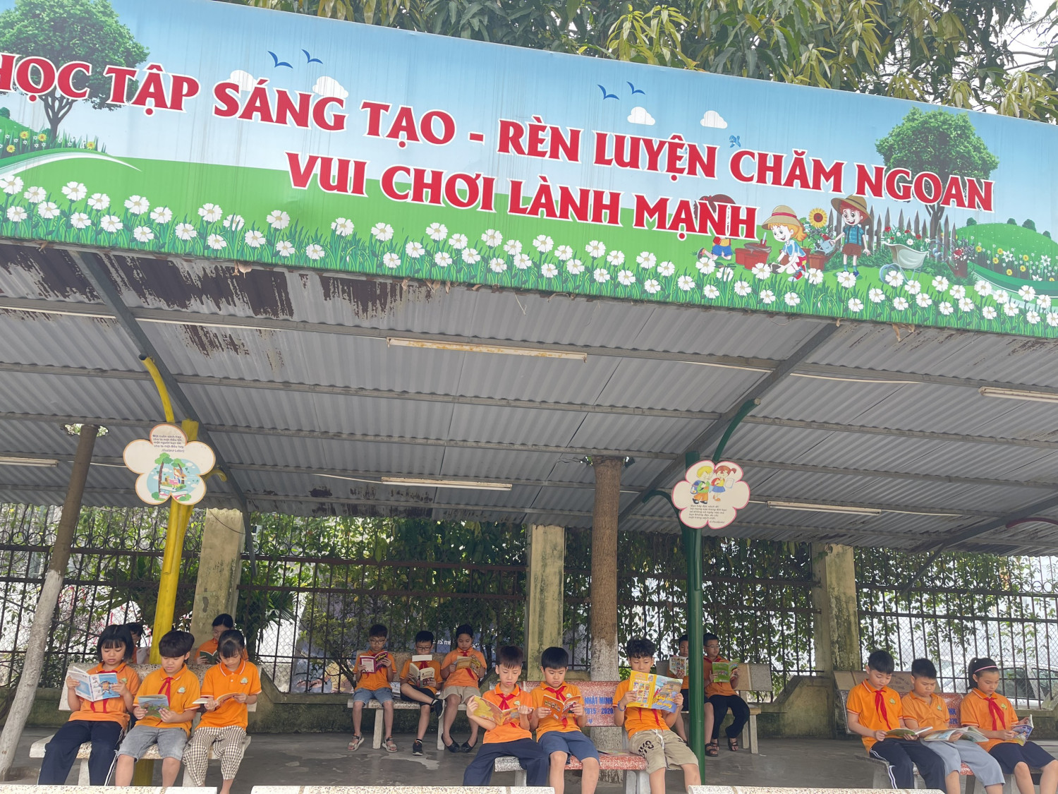Nhà trường tổ chức triển lãm sách với nhiều đầu sách hay, bổ ích về lịch sử, văn học, khoa học kỹ thuật... Các em học sinh được tìm hiểu và đọc những cuốn sách mà mình yêu thích. Ngoài ra trong chương trình, các em còn được tìm hiểu về anh hùng liệt sĩ Kim Đồng với những câu hỏi và phần quà hấp dẫn...