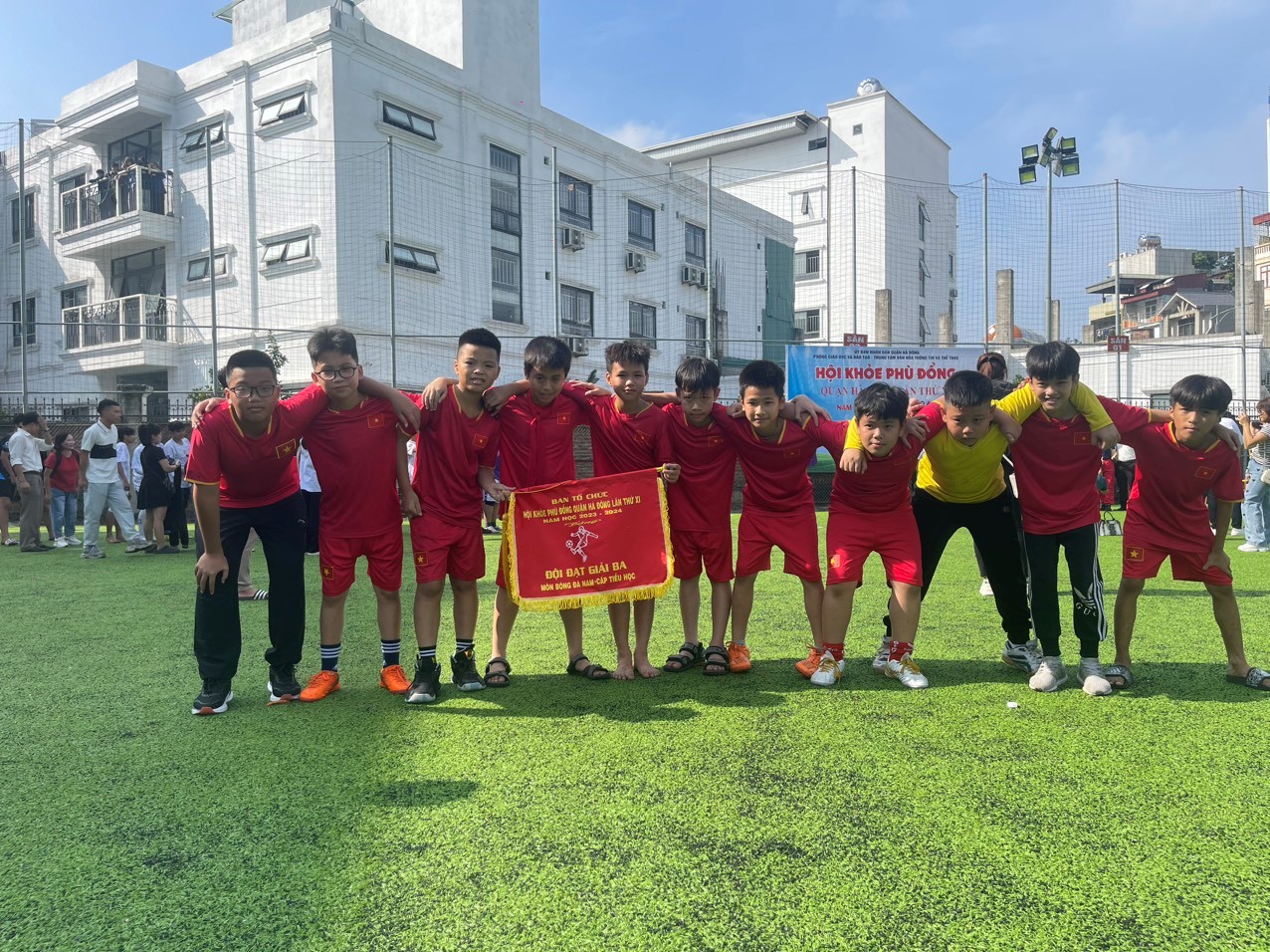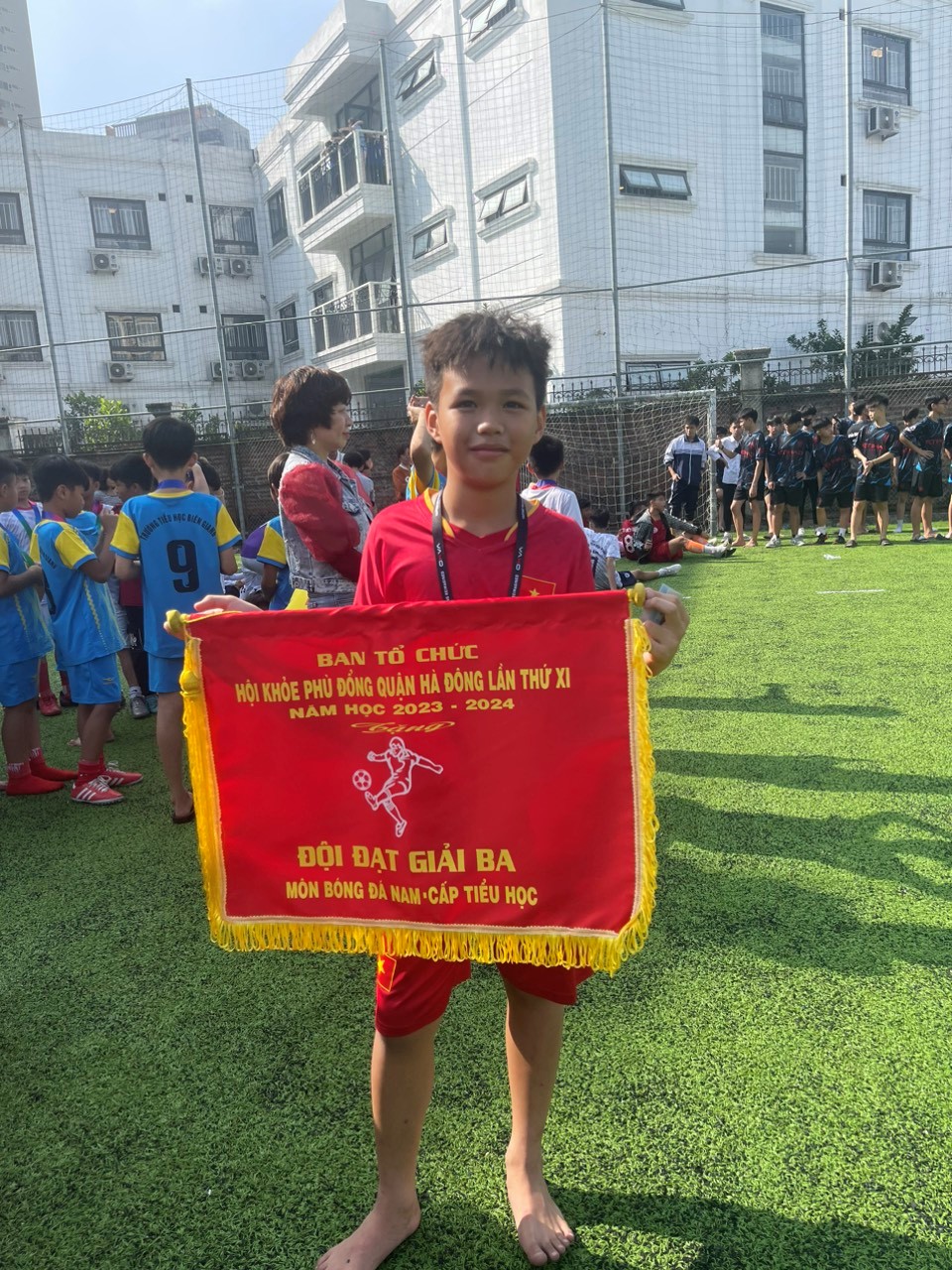 Sáng Thứ Tư, ngày 13/12/2023 tại sân bóng Phú La, đã diễn ra trân bán kết giữa 2 đội bóng Trường TH Lê Lợi và trường TH Biên Giang. Những tiếng hò reo, cổ vũ rất sôi nổi của khán giả có mặt trên sân, với tinh thầnđoàn kết và thi đấu “cháy hết mình” của các em. Các cầu thủ nhí tài năng của trường Tiểu học Lê Lợi đã xuất sắc dành huy chương môn bóng đá tại giải Hội Khoẻ Phù Đổng cấp Quận Hà Đông lần thứ XI - Năm học 2023 - 2024. Xin chân thành cảm ơn Ban lãnh đạo nhà trường, sự đồng hành của các bậc phụ huynh, các thầy cô giáo trong ban huấn luyện của nhà trường, đặc biệt cảm ơn các cầu thủ nhí đã cố gắng hết mình vì màu cờ, sắc áo của Tiểu học Lê Lợi thân yêu. Chúc mừng chiến thắng của các Con. Xin hẹn gặp lại quý phụ huynh và các cầu thủ nhí ở mùa giải sau.