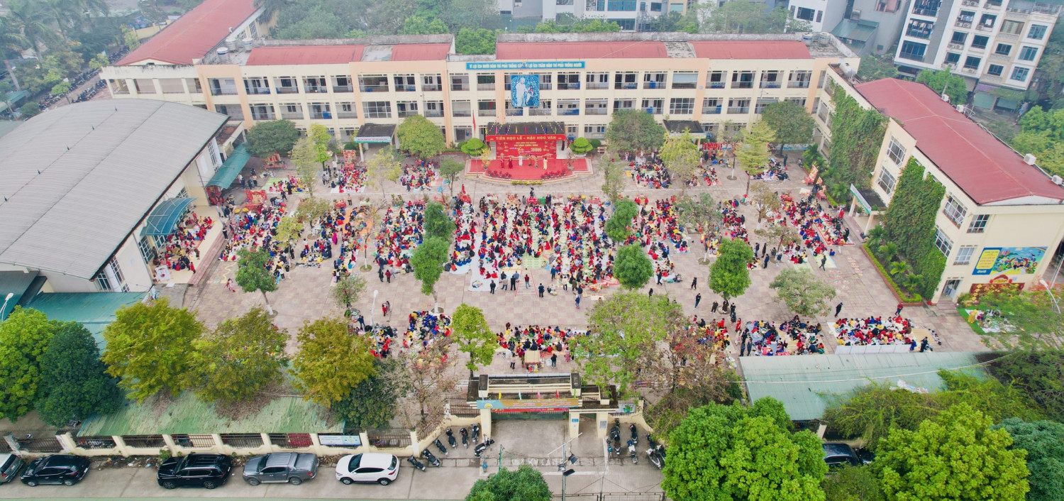 Sau những ngày rét đậm, chút mưa xuân rây rây rắc xuống làm cho con người ta cảm nhận mùa Xuân Giáp Thìn đang đến thật gần. Cổng trường Tiểu học Lê Lợi (quận Hà Đông) hôm nay mở sớm hơn thường lệ. Sân trường từ sáng sớm đã đông đúc và rực rỡ sắc màu. Trên mỗi gương mặt của giáo viên, học sinh và phụ huynh thể hiện rõ sự hồ hởi, háo hức cho ngày hội gói bánh chưng xanh.