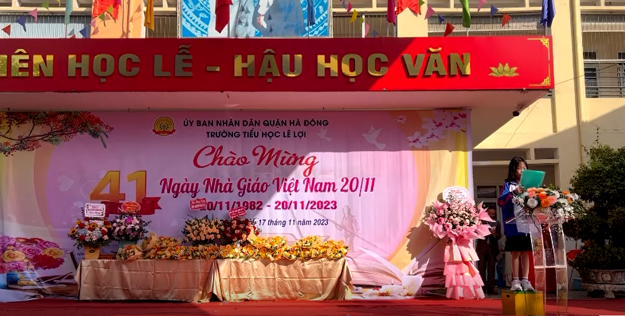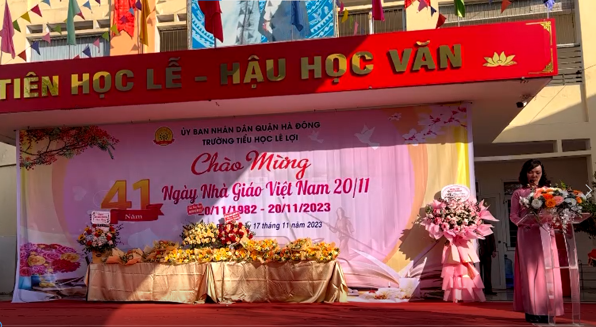 Hoà chung với khí thế tưng bừng, phấn khởi của ngành giáo dục cả nước chào mừng 41 năm ngày NGVN (20/11/1982 - 20/11/2023). Ngày 17/11/2023, được sự nhất trí của phòng GD và ĐT quận Hà Đông, Trường TH Lê Lợi tổ chức chào mừng ngày nhà giáo Việt Nam trong niềm vui hân hoan khó tả.