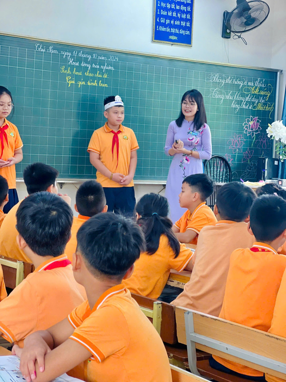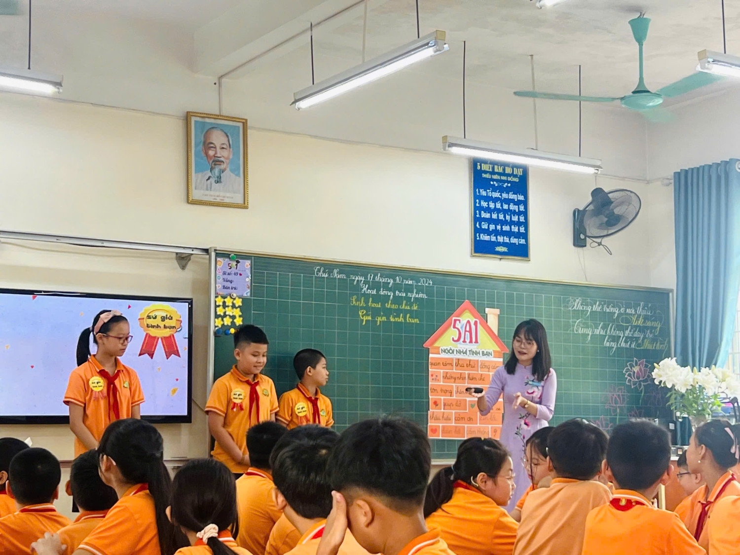 Tiết dạy Hoạt động trải nghiệm đã được cô An khéo léo truyền thụ về cách để giữ gìn tình bạn đẹp. Các em biết chia sẻ về ưu điểm của bạn trong lớp, cảm xúc khi được nghe ưu điểm mà bạn nhận xét về mình, và bình chọn ra được Sứ giả tình bạn của lớp. Qua sự dẫn dắt hỗ trợ của cô, học sinh nhanh chóng nêu được ưu điểm của bạn. Các con mạnh dạn, phát biểu lưu loát, rõ ràng và đặc biệt rất hồn nhiên.