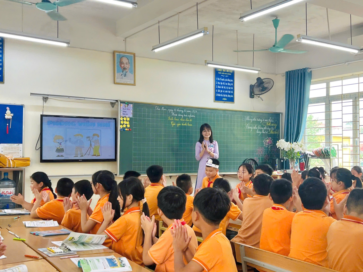 Cô giáo lôi cuốn học sinh bằng việc ứng dụng Công nghệ thông tin lựa chọn một nhân vật hoạt hình đồng hành cùng cả lớp. Tiết học thực sự thú vị, thể hiện rõ đặc trưng của môn học Hoạt động trải nghiệm. Cô đã thành công trong việc tạo ra một tiết học sôi động và hấp dẫn, khuyến khích học sinh đặt câu hỏi, thảo luận và làm việc nhóm để tự mình khám phá kiến thức.