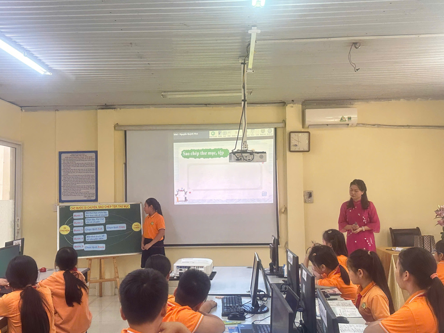 Trong tiết dạy bài "Bài 10: Các thao tác với tệp và thư mục", Cô Quỳnh Hoa đã áp dụng phương pháp dạy học lấy học sinh làm trung tâm, kết hợp với các công cụ hỗ trợ trực quan, sinh động. Học sinh được hướng dẫn dễ hiểu về các thao tác di chuyển, sao chép với tệp và thư mục. Đặc biệt, cô tạo ra những tình huống thực tế để học sinh giải quyết, phát triển tư duy logic và kỹ năng máy tính. Đồng thời, cô lồng ghép kiến thức về kỹ năng công dân số, giúp học sinh hiểu rõ hơn về an toàn và trách nhiệm khi sử dụng công nghệ. Giờ học diễn ra sôi nổi với sự tham gia tích cực và hiệu quả của các em HS.