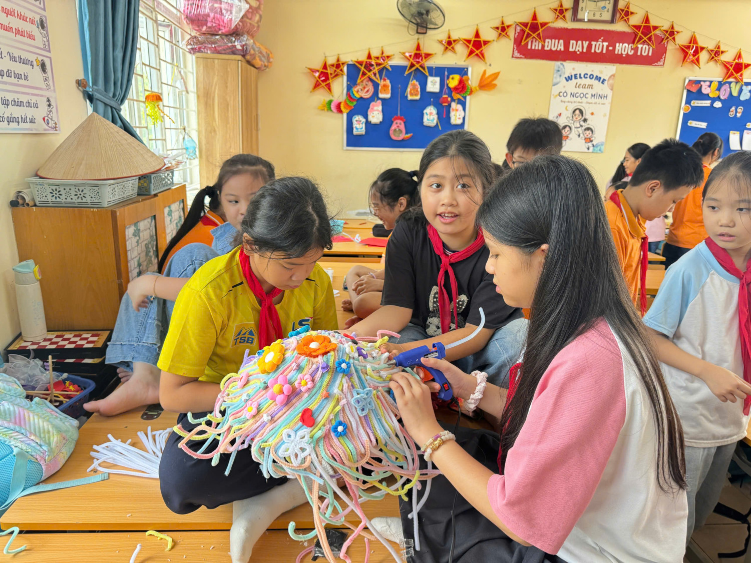 Tự tay làm nên chiếc đèn trung thu hay mặt nạ rực rỡ, các em học sinh không chỉ rèn luyện sự kiên trì, khéo léo mà còn cảm nhận được niềm vui trọn vẹn khi thấy sản phẩm của mình tỏa sáng dưới ánh trăng rằm.