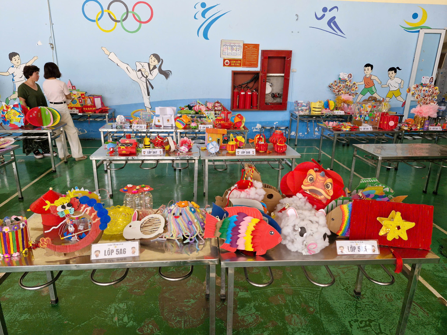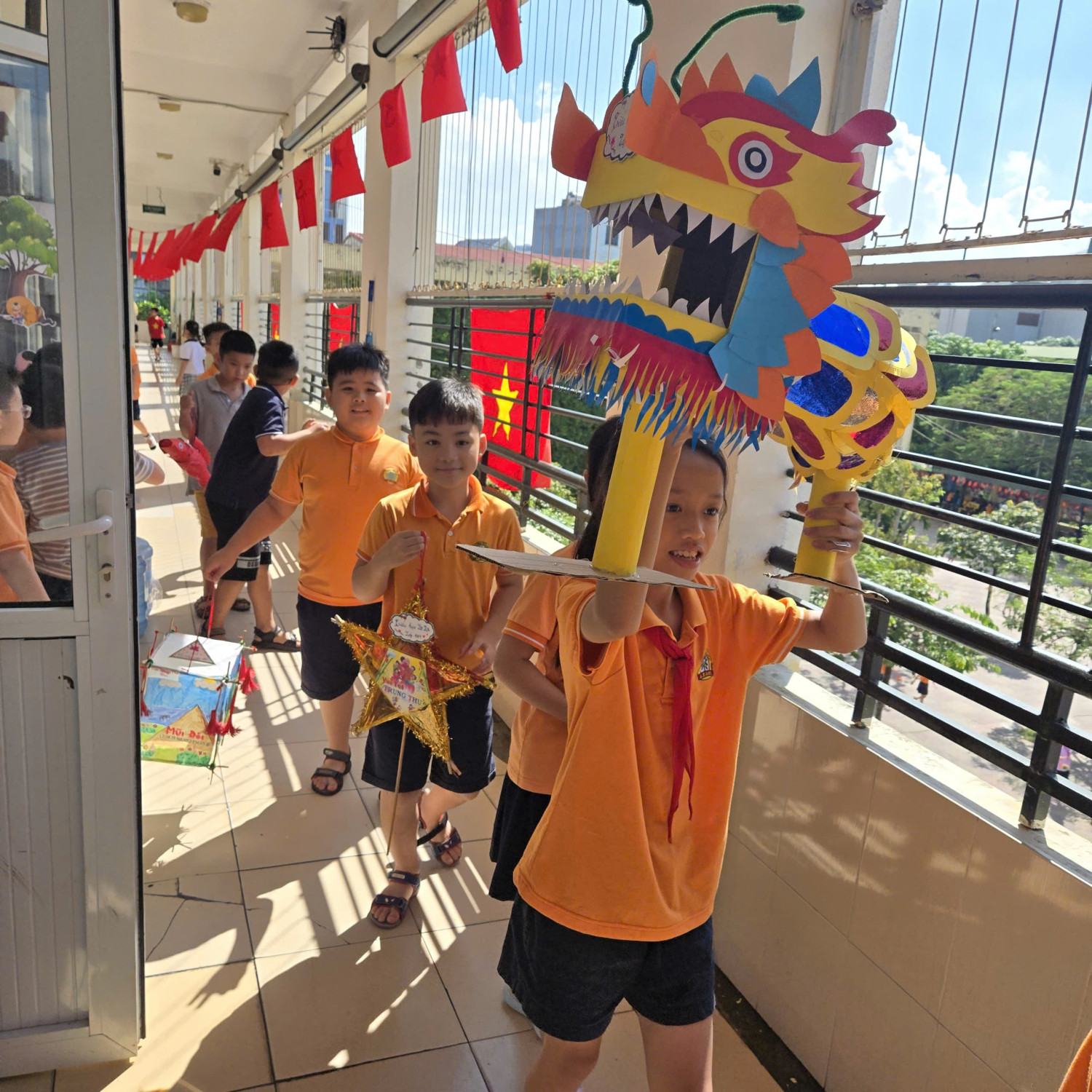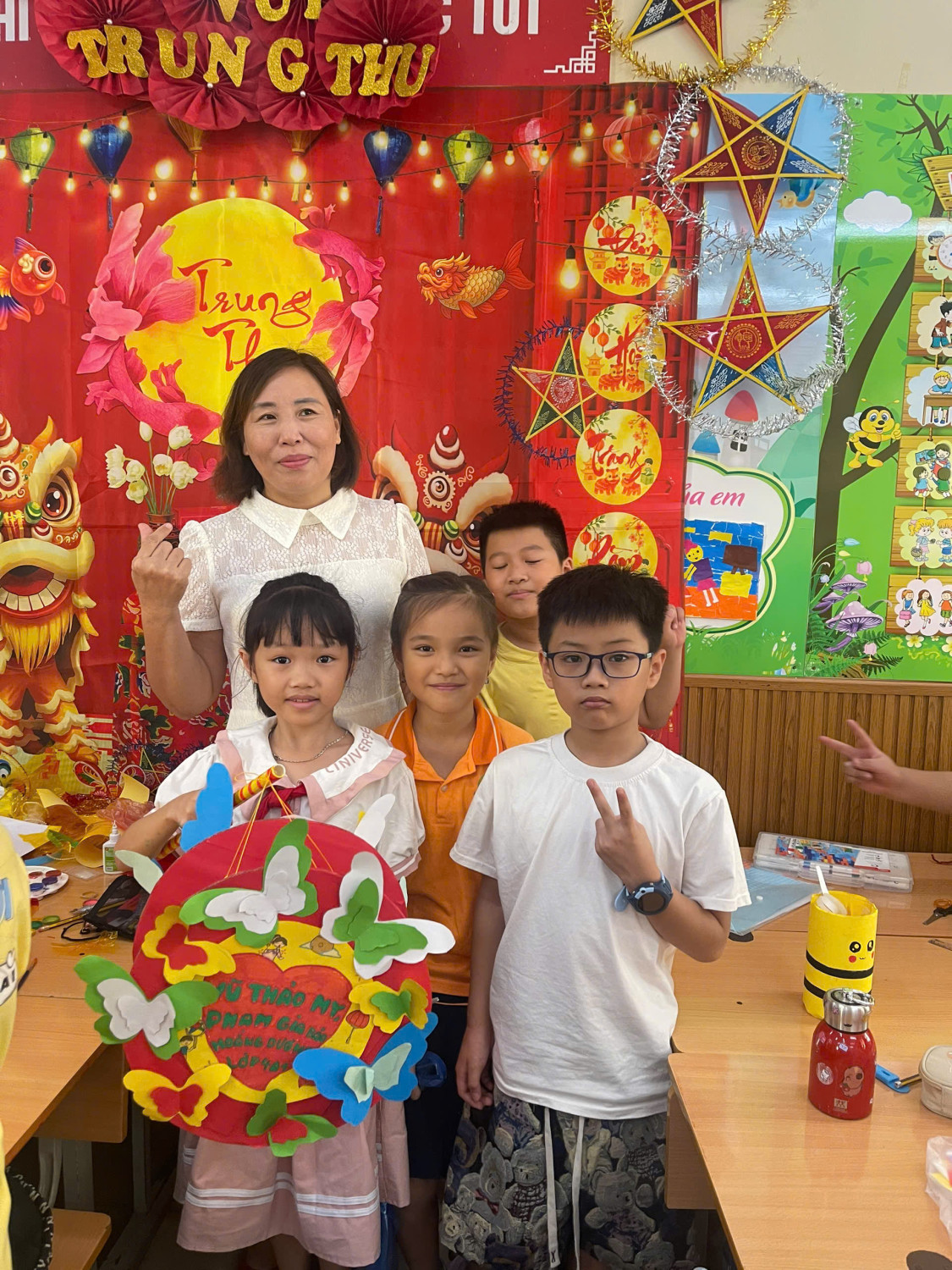 Ở khối lớp lớn hơn, những chiếc đèn trung thu với đủ kiểu dáng đã lần lượt ra đời: đèn ông sao truyền thống, đèn kéo quân lung linh, đèn lồng sáng tạo từ vật liệu tái chế, đèn rồng, đèn cá chép, .... Mỗi sản phẩm các em tự tay làm ra đều ẩn chứa những ý tưởng sáng tạo, tâm huyết, niềm say mê và sự khéo léo của các em học sinh.