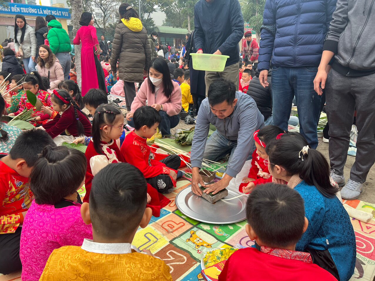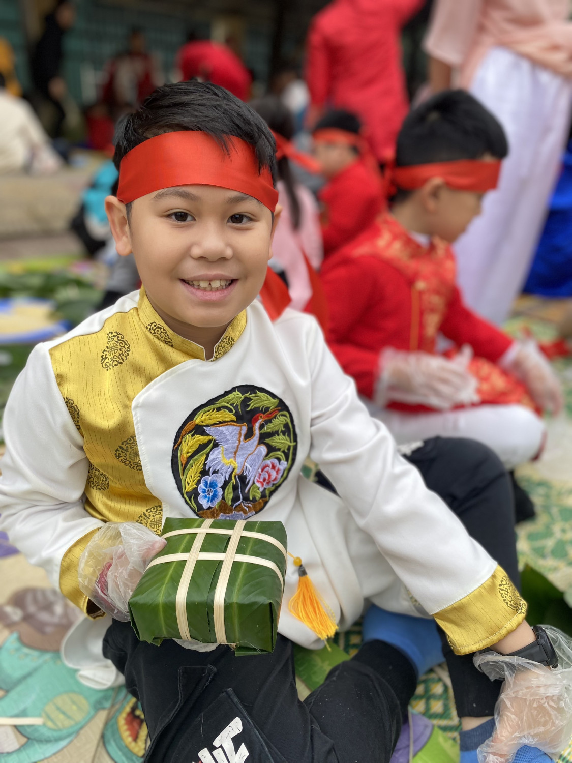 Qua sự hướng dẫn tỉ mỉ của các bậc CMHS và thầy cô giáo, các em HS đã tự tay làm được những chiếc bánh chưng xinh xắn. Các em rất thích thú và hào hứng khi cầm trên tay chiếc bánh do chính tay mình gói.
