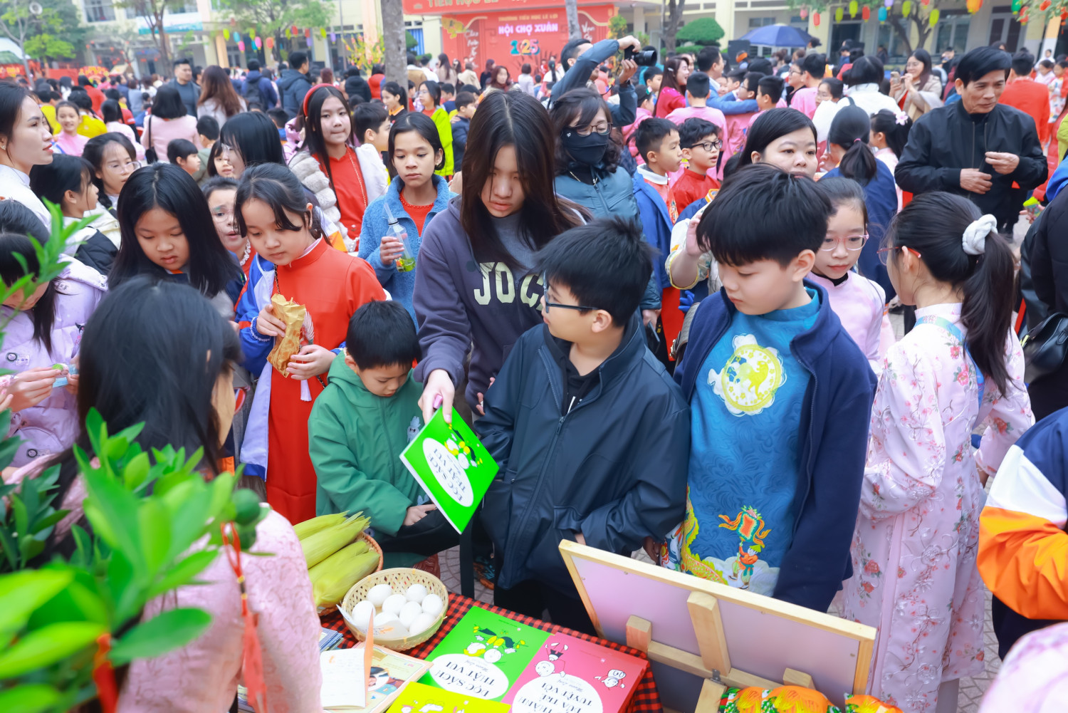 Một điểm nhấn không thể bỏ qua chính là khu vực ẩm thực. Học sinh được tự do mua sắm và thưởng thức các món ăn ngon, quen thuộc của tuổi thơ như bò bía, kẹo kéo, bánh trôi, chè cốm… Không chỉ mang đến niềm vui, hoạt động này còn giúp các em rèn luyện kỹ năng chi tiêu hợp lý - một kỹ năng quan trọng trong cuộc sống và trải nghiệm không khí hội chợ như những ngày Tết thực sự.