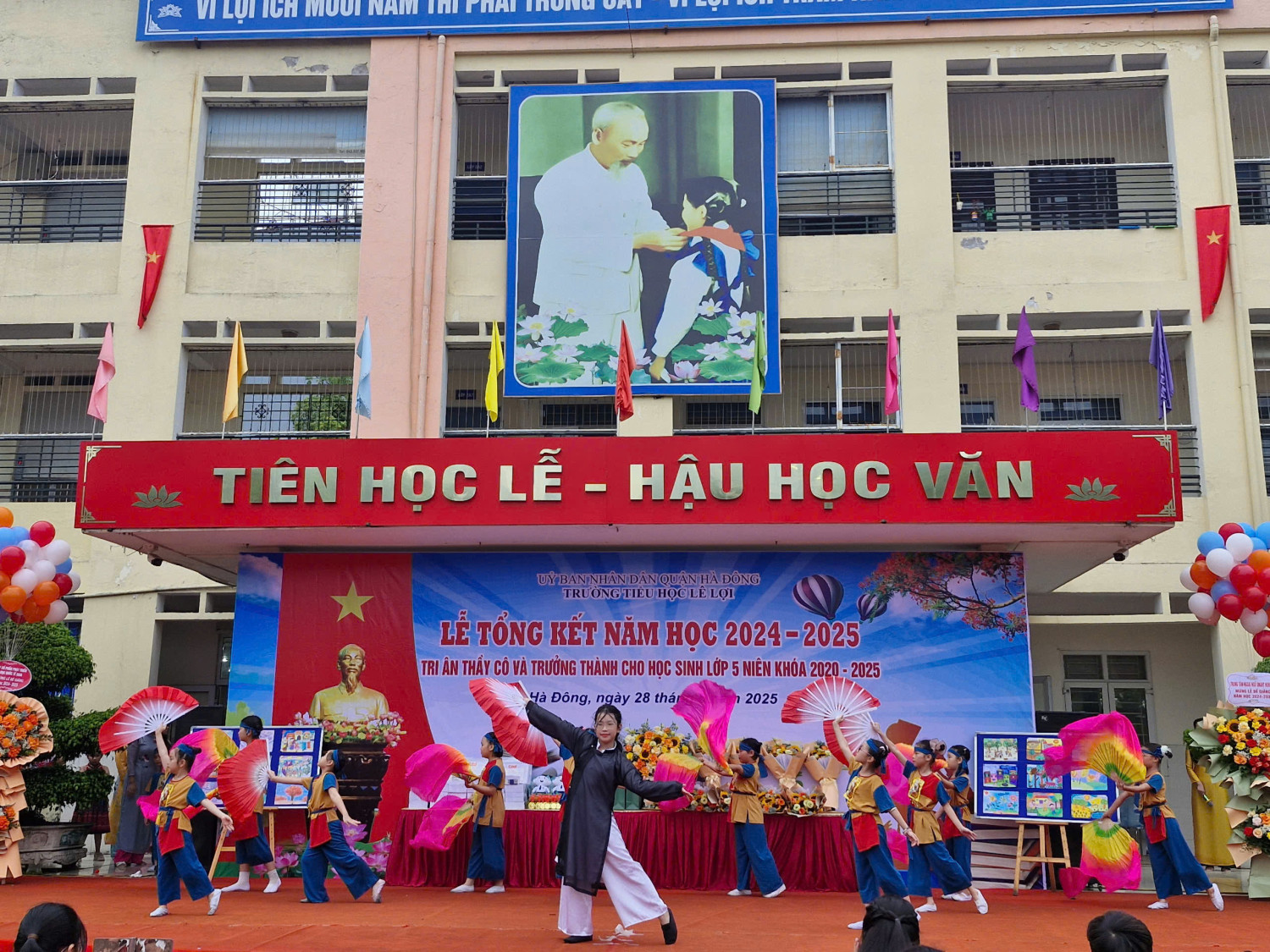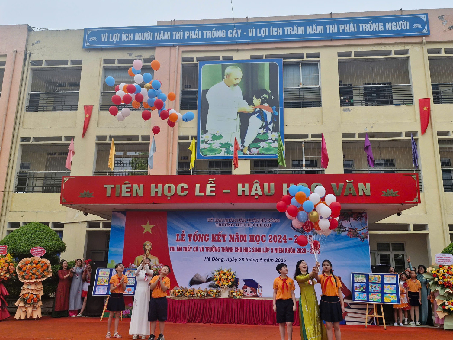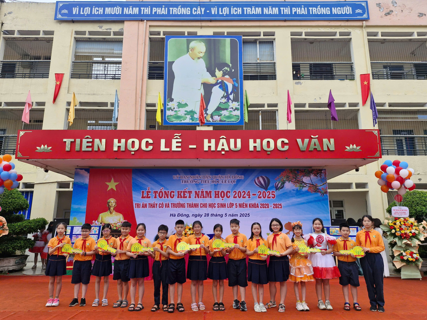 Sáng ngày 20/5/2025, sân trường Tiểu học Lê Lợi rộn ràng với những nụ cười rạng rỡ của thầy cô, học sinh, phụ huynh trong buổi Lễ tổng kết năm học 2024–2025 và Lễ trưởng thành cho học sinh lớp 5 – một cột mốc thiêng liêng, đầy xúc động của những “chồi non” sắp rời xa mái trường Tiểu học.