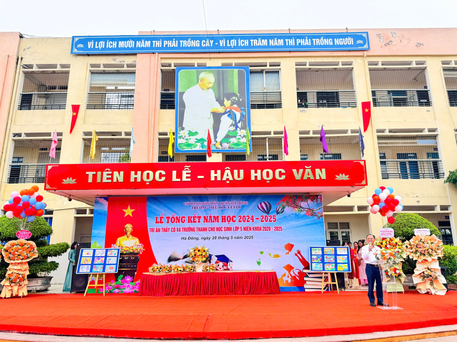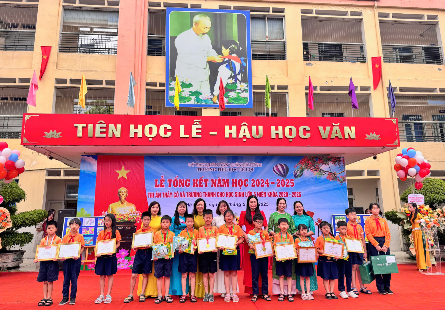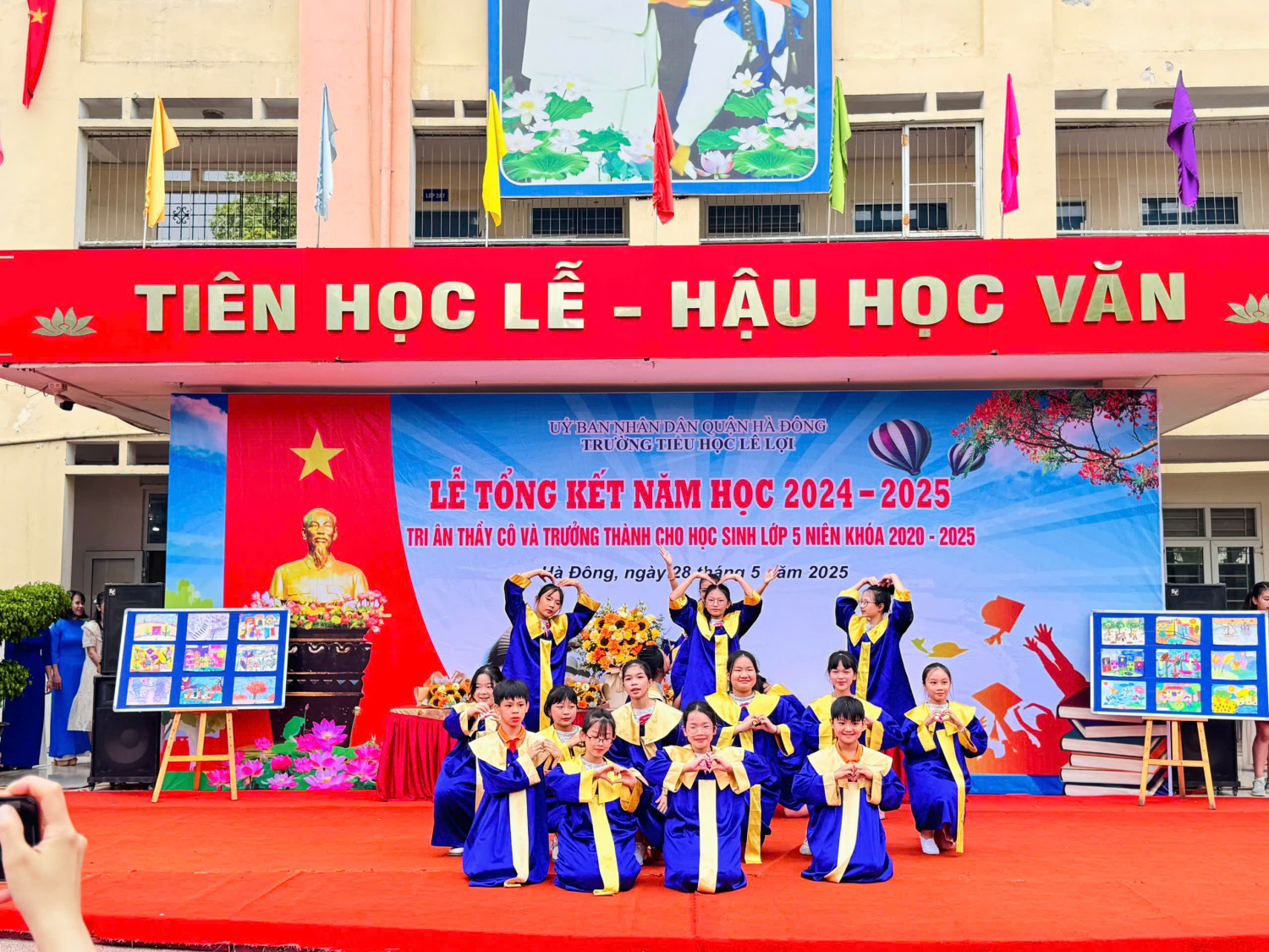 Sáng ngày 20/5/2025, sân trường Tiểu học Lê Lợi rộn ràng với những nụ cười rạng rỡ của thầy cô, học sinh, phụ huynh trong buổi Lễ tổng kết năm học 2024–2025 và Lễ trưởng thành cho học sinh lớp 5 – một cột mốc thiêng liêng, đầy xúc động của những “chồi non” sắp rời xa mái trường Tiểu học.