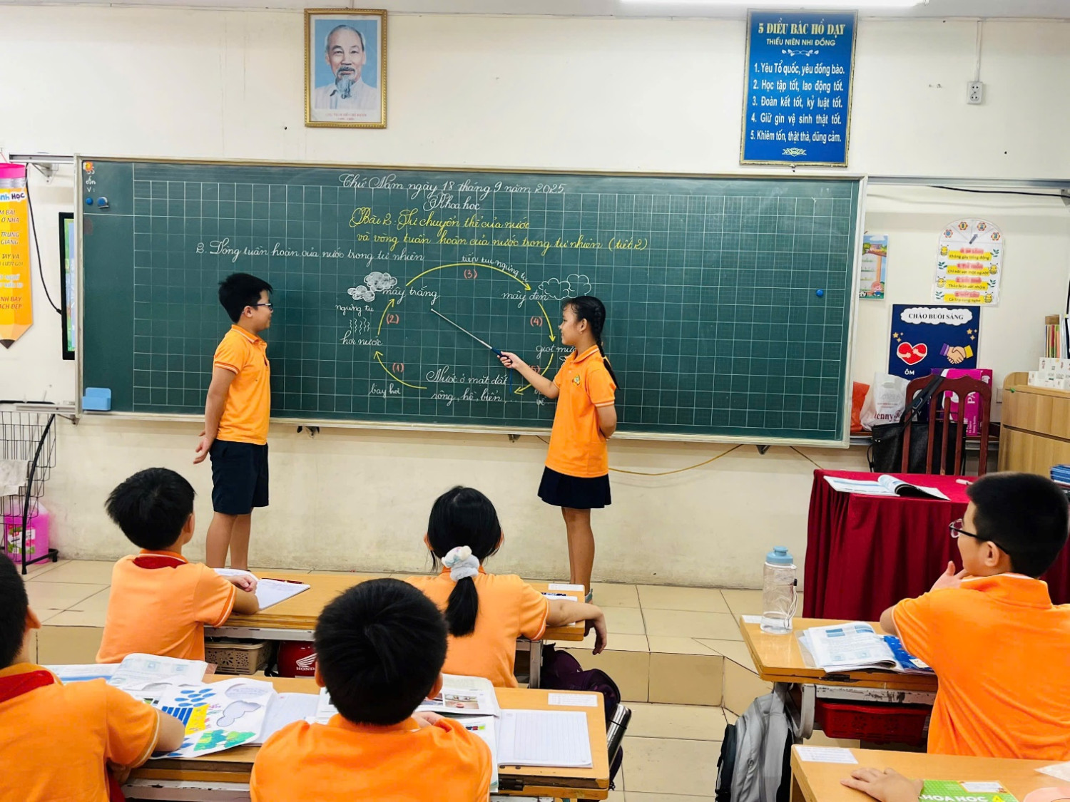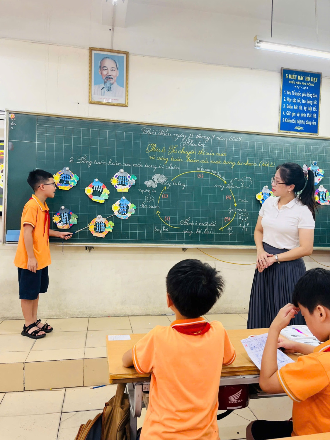 Dưới đây là những khoảnh khắc đáng nhớ trong tiết Khoa học: “Sự chuyển thể của nước và vòng tuần hoàn của nước trong tự nhiên” – nơi tri thức và cảm xúc cùng hòa quyện thành một dòng chảy diệu kỳ của cô và các bạn học sinh lớp 4A2.
