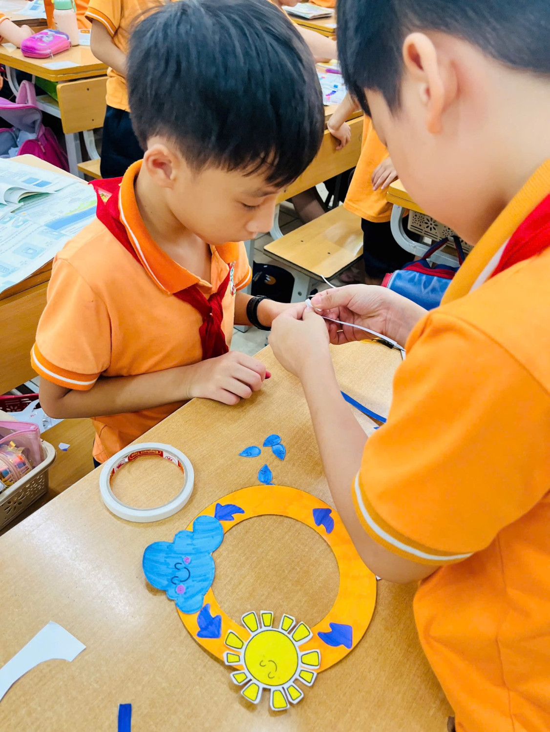Từ những vật liệu gần gũi như giấy, chai nhựa, bìa màu hay sợi len, các nhóm học sinh đã cùng nhau sáng tạo nên những mô hình sinh động, đầy màu sắc và ý tưởng: những dòng sông xanh, áng mây trắng, giọt mưa long lanh... tất cả được tái hiện bằng trí tưởng tượng phong phú và đôi tay khéo léo. Mỗi mô hình là một “tác phẩm nhỏ” thể hiện sự hiểu biết, tinh thần hợp tác và niềm say mê học hỏi của các em.