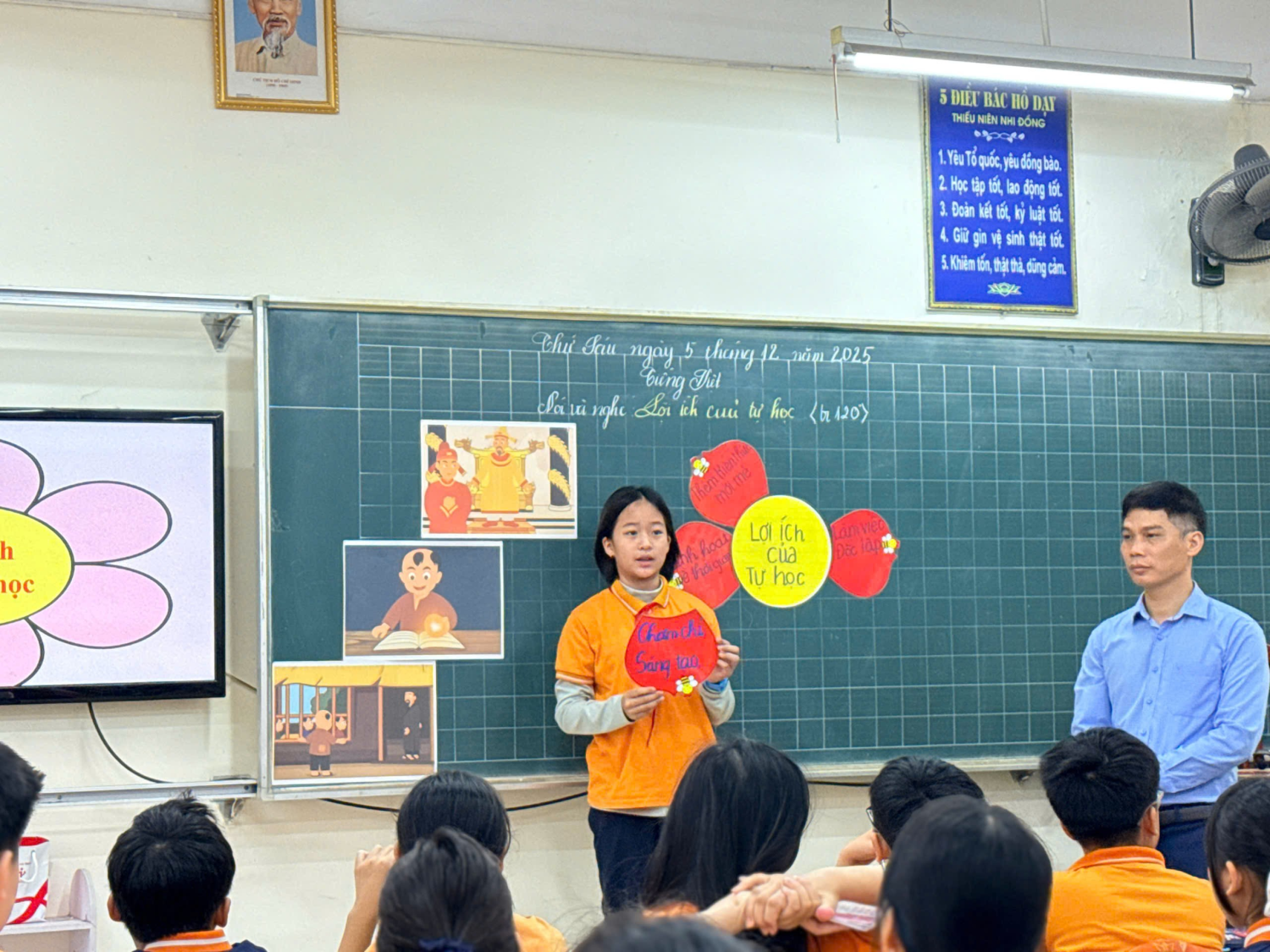 Thực hiện kế hoạch sinh hoạt chuyên môn của nhà trường, sáng ngày 5 tháng 12 năm 2025 đồng chí Lê Văn Soát và đồng chí Trịnh Thị Lan đã thực hiện tiết dạy phân môn Tiếng Việt – Nói và nghe: “Lợi ích của tự học” tại lớp 5A8 và lớp 5A2.