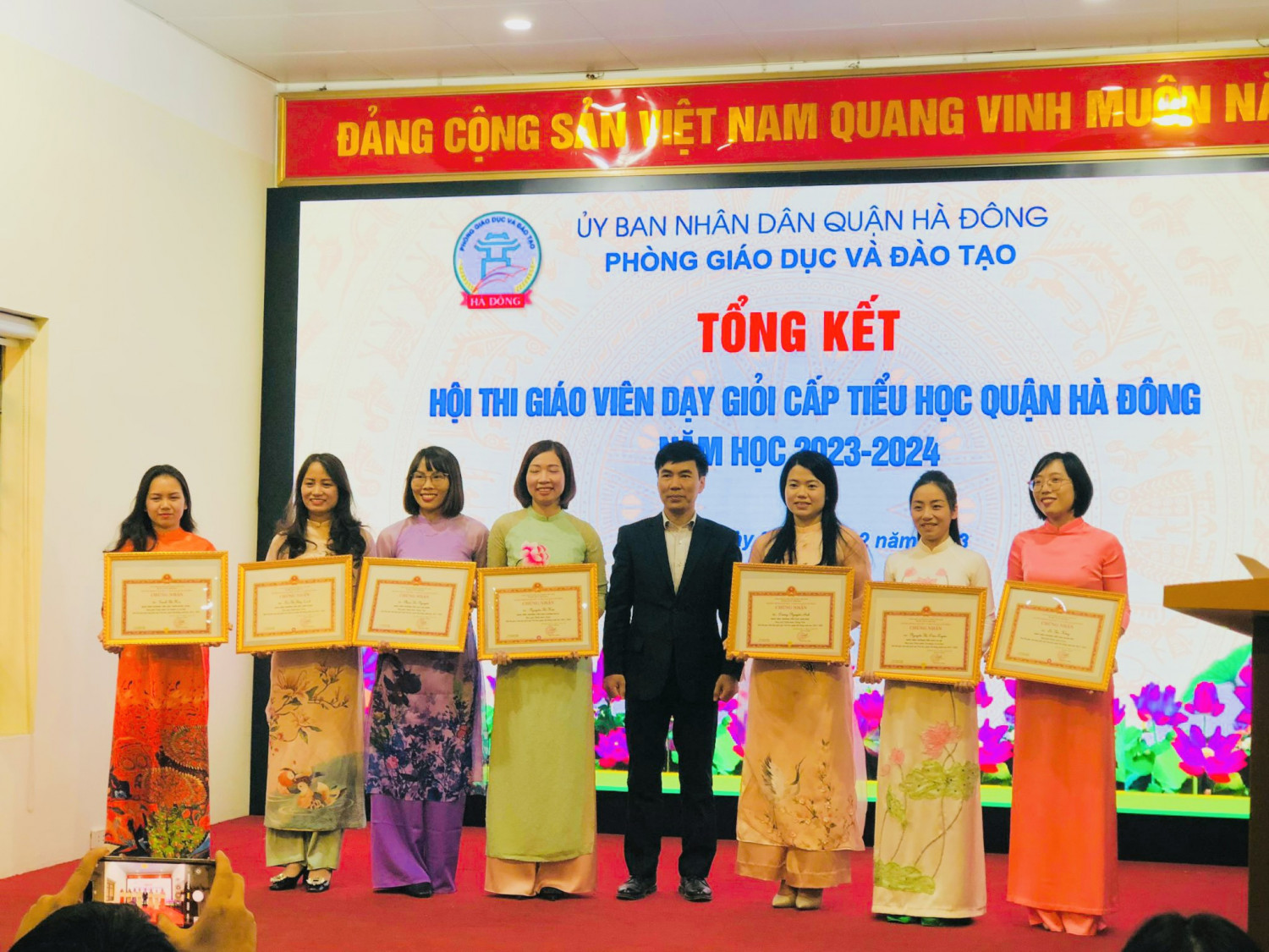 Thực hiện CV số: 698 /HD-PGDĐT về việc hướng dẫn hội thi giáo viên dạy giỏi cấp tiểu học quận Hà Đông năm học 2023-2024. Trường Tiểu học Lê Lợi đã tổ chức, phát động cuộc thi trong toàn trường và tham gia hội thi cấp Quận với 2 tiết dạy của các môn: Tự nhiên và xã hội, Tiếng Anh lớp 3.