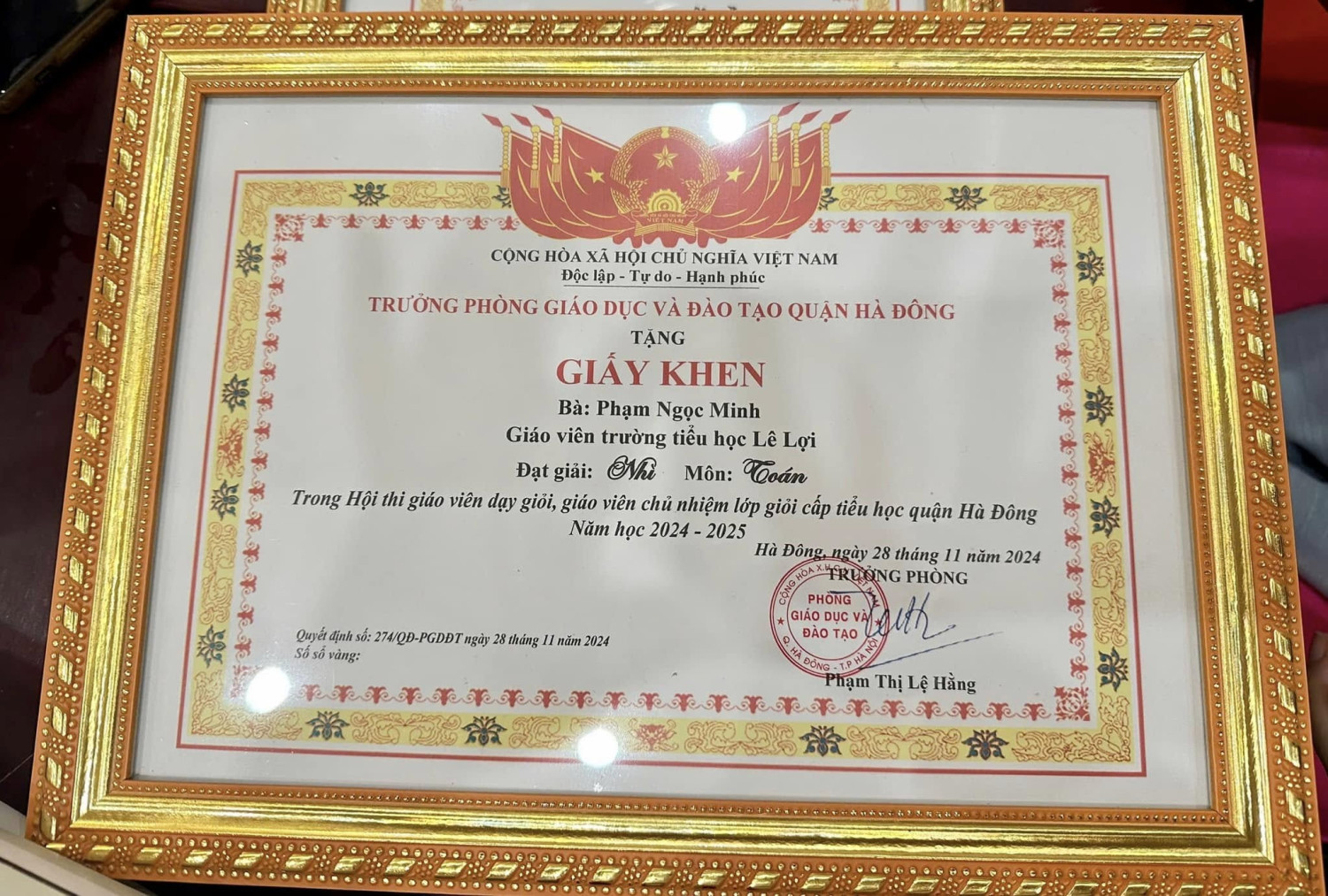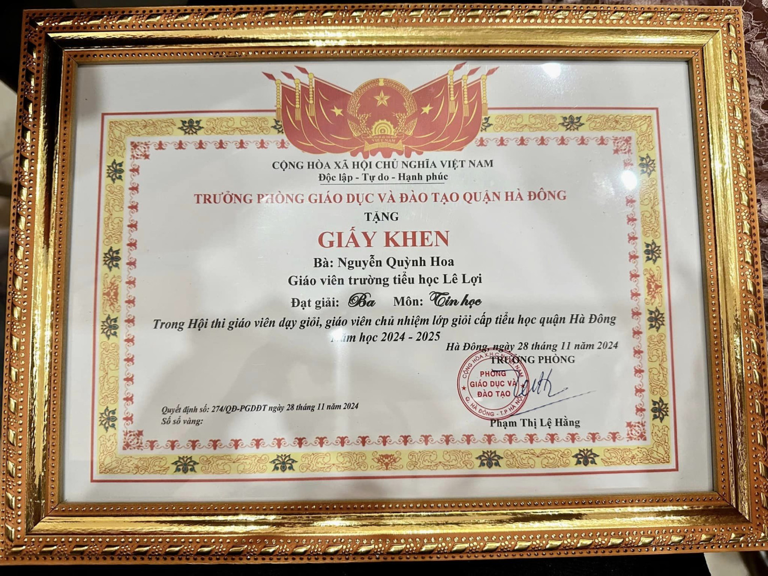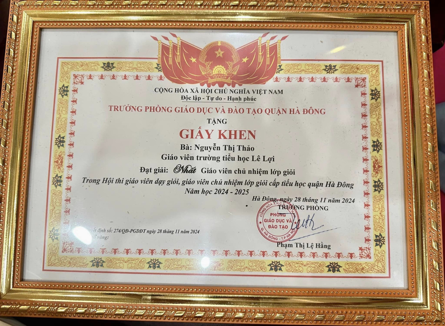 Những giải thưởng cao quý này đã tiếp tục khẳng định vị thế của Trường Tiểu học Lê Lợi trong ngành giáo dục Quận Hà Đông. Đồng thời, đó cũng là niềm tự hào chung của nhà trường.