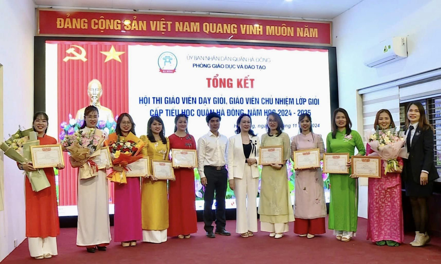 Chiều ngày 29/11/2024 tại hội trường Phòng GDĐT Quận Hà Đông, Hội thi “Giáo viên dạy giỏi, Giáo viên chủ nhiệm lớp giỏi” năm học 2024-2025 đã khép lại thành công rực rỡ, để lại nhiều dấu ấn đặc biệt. Đây là dịp để các thầy cô giáo tài năng trên địa bàn quận Hà Đông thể hiện chuyên môn, sáng tạo và tâm huyết trong sự nghiệp “trồng người”.