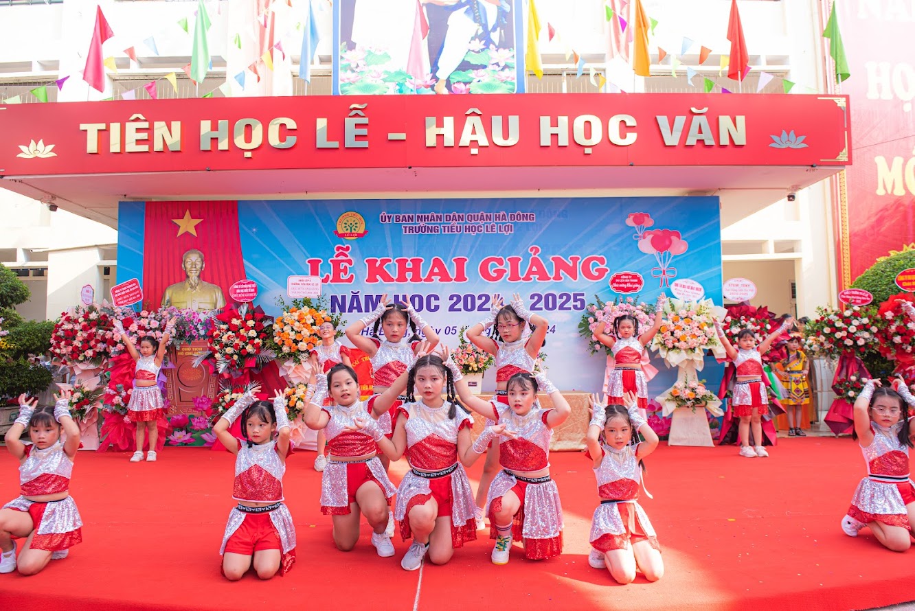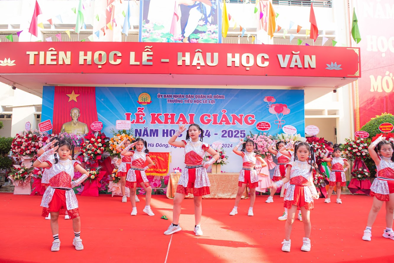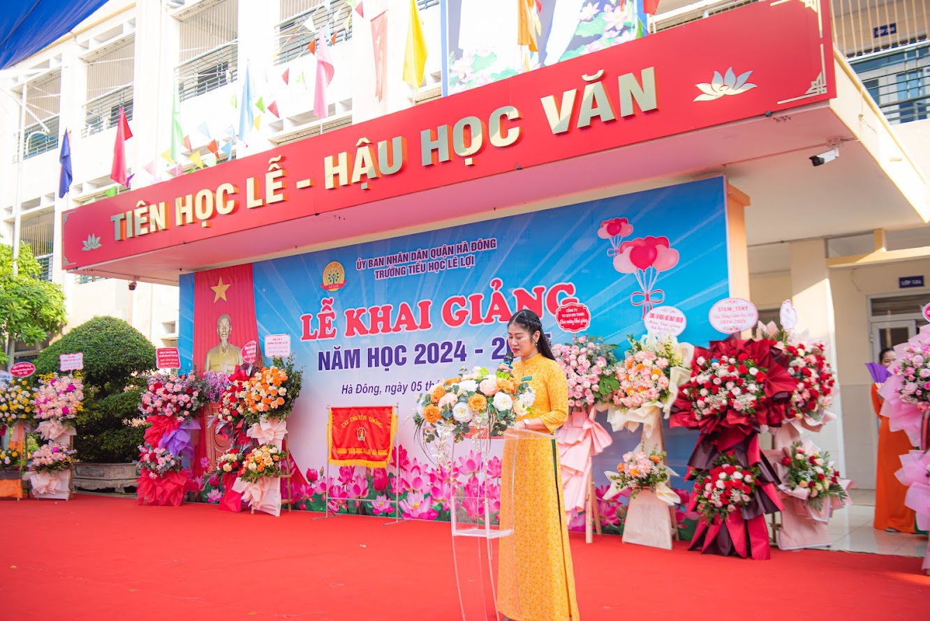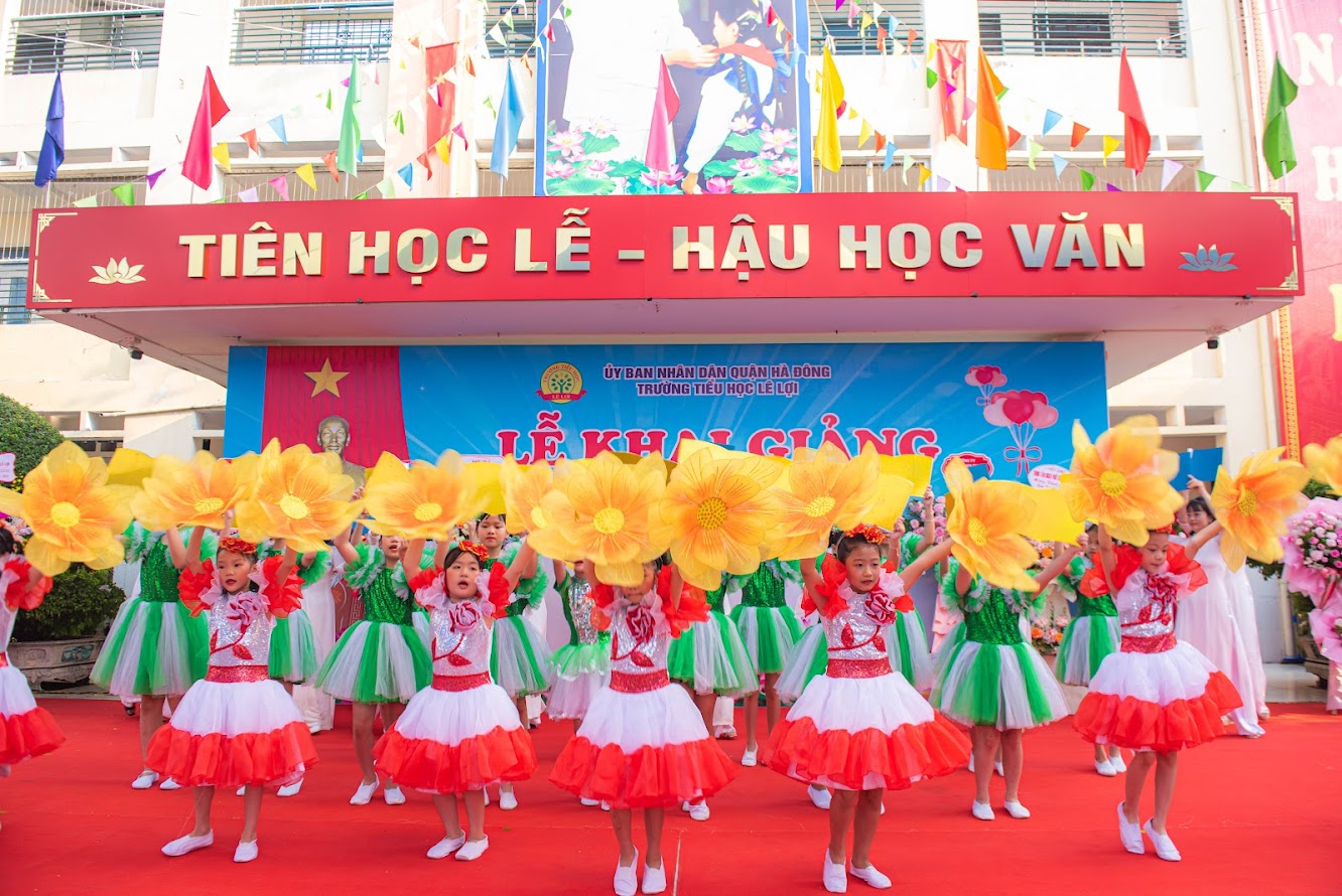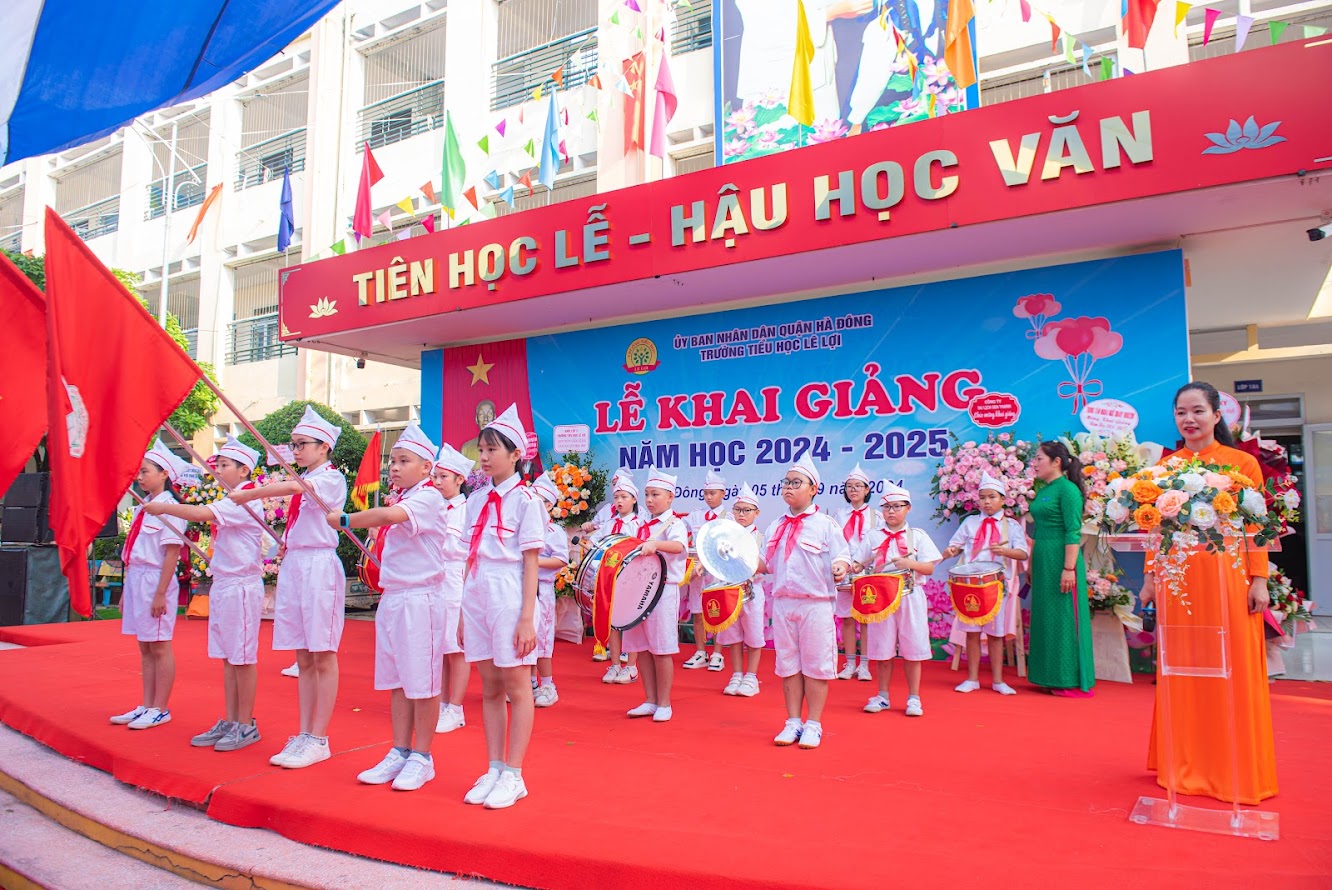 Hoà chung trong không khí tưng bừng phấn khởi của đất nước ta, dân tộc ta với những giây phút hào hùng của mùa thu lịch sử. Kỉ niệm 79 năm cách mạng tháng Tám thành công và Quốc khánh 2-9. Hoà chung không khí tưng bừng của ngày hội toàn dân đưa trẻ tới trường. Hàng triệu giáo viên, học sinh, sinh viên trên cả nước lại cùng nhau bước vào cuộc hành trình khám phá tri thức mới. Thực hiện sự chỉ đạo của phòng GDĐT, hôm nay, ngày 5/9/2024 trường Tiểu học Lê Lợi long trọng tổ chức Lễ khai giảng năm học mới - năm học 2024 - 2025. Nhà trường vinh dự được đón tiếp nhiều vị khách quý đến chung vui, chúc mừng thầy và trò: Bà Nguyễn Thu Hoài - Phó bí thư thường trực Đảng ủy Phường Hà Cầu; Ông Bùi Việt Đông hội trưởng cùng toàn thể ban đại diện Hội cha mẹ học sinh; 40 ông bà CMHS các lớp và toàn thể cán bộ, giáo viên, nhân viên, học sinh nhà trường hân hoan tham dự lễ khai giảng. Trong không khí trang nghiêm và phấn khởi của buổi lễ, cô giáo Đỗ Thị Minh Yến, Bí thư Chi bộ, Hiệu trưởng nhà trường đã chính thức tuyên bố khai giảng năm học mới - năm học 2024 - 2025. Tiếng trống trường vang lên giòn giã, đánh dấu một chặng đường mới đầy hứa hẹn cho thầy và trò trường Tiểu học Lê Lợi. Với chủ đề năm học mới “Đổi mới sáng tạo, nâng cao chất lượng, đoàn kết kỷ cương", cùng với phương châm “Trách nhiệm - Năng động - Sáng tạo” và khẩu hiệu hành động “Thầy mẫu mực - Trò chăm ngoan”, thầy và trò trường Tiểu học Lê Lợi đã sẵn sàng cho một năm học mới, với khí thế mới đầy hứng khởi và hiệu quả. Trang sách đã mở ra, một hành trình mới đã bắt đầu, các thầy cô giáo cùng với những hành trang tri thức sẽ dẫn lối giúp các em khám phá kho tàng kiến thức vô tận. Chúc các em luôn cố gắng hết mình để biến những ước mơ thành hiện thực!