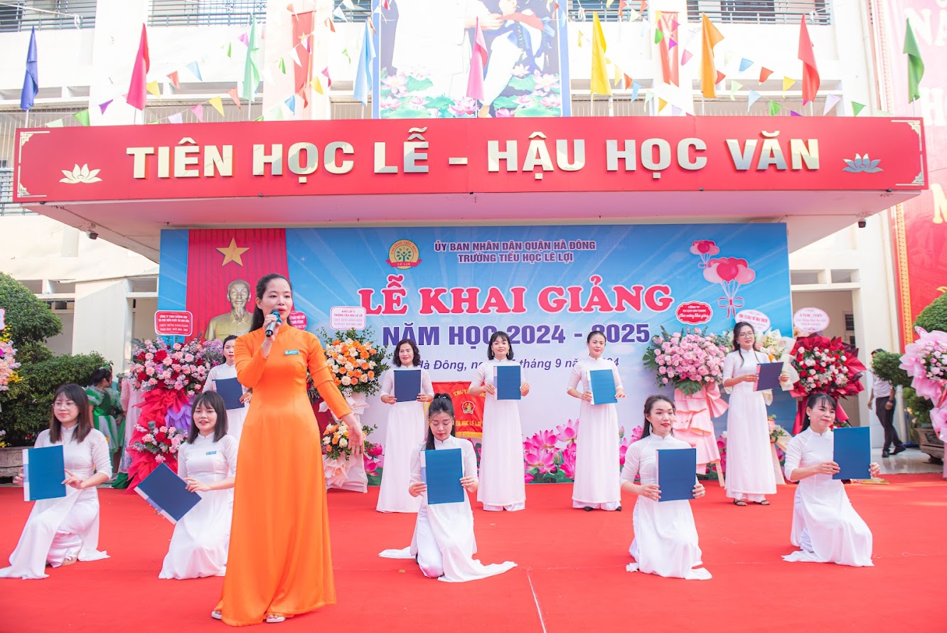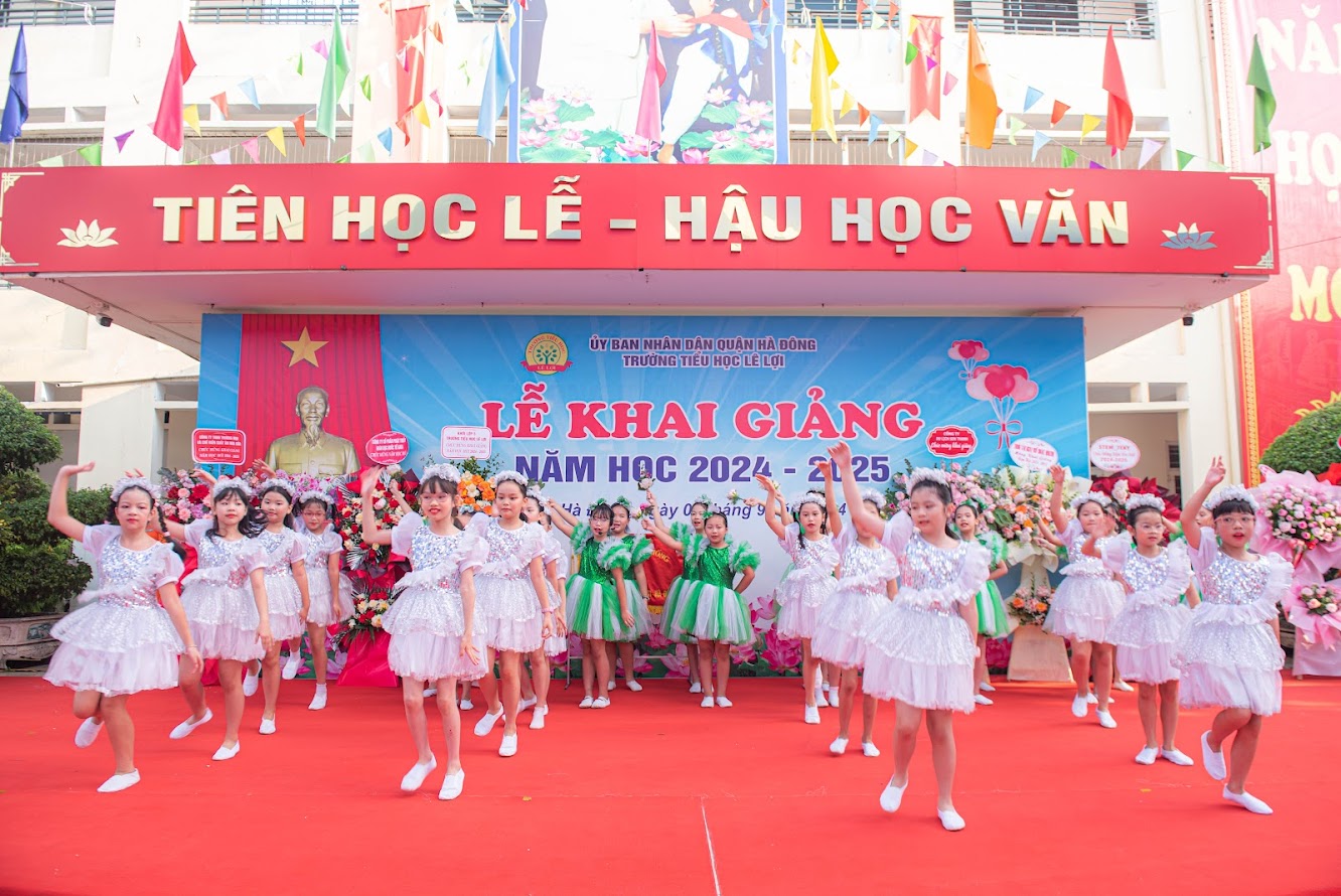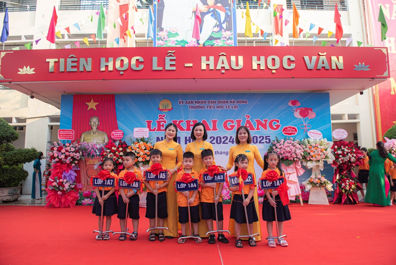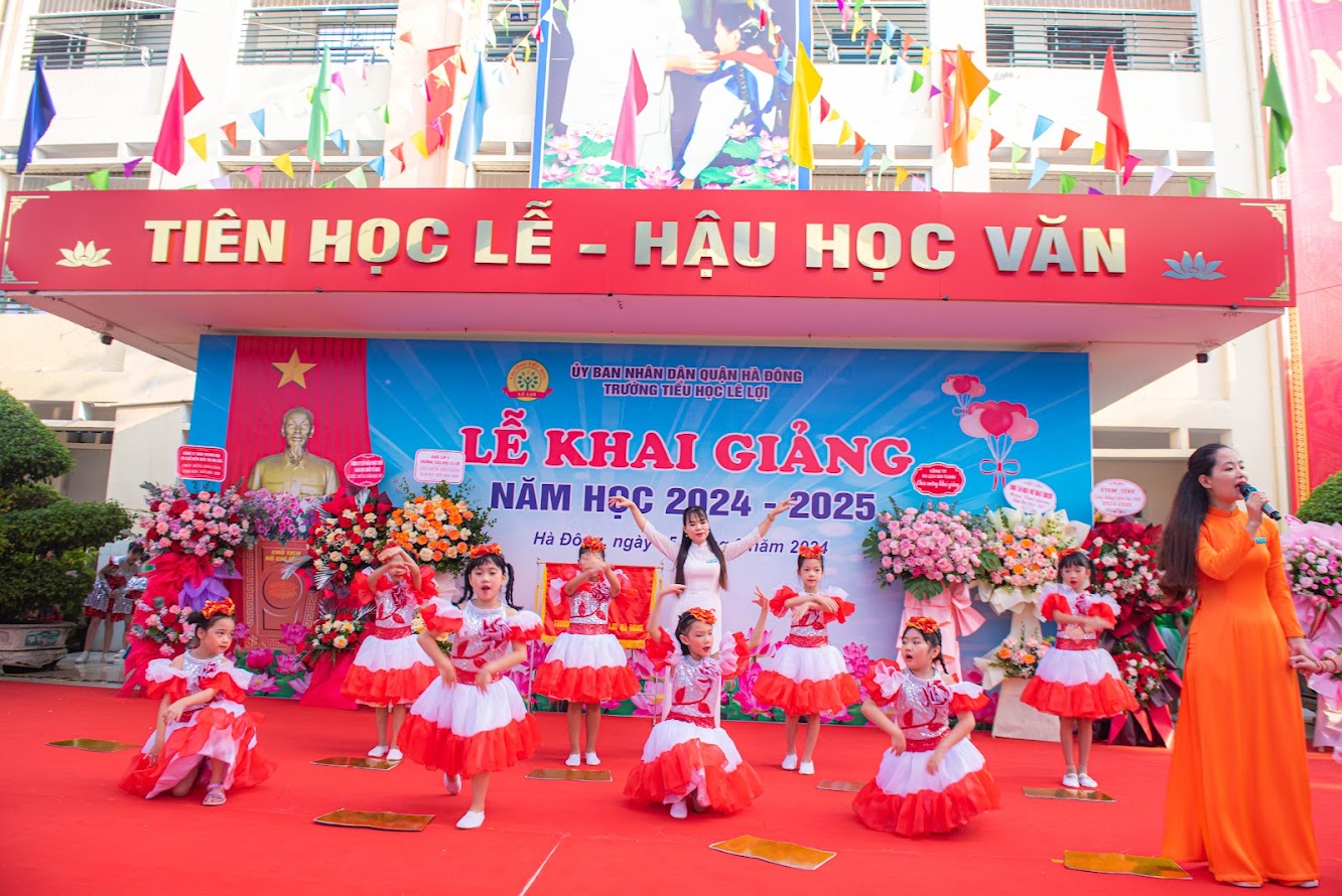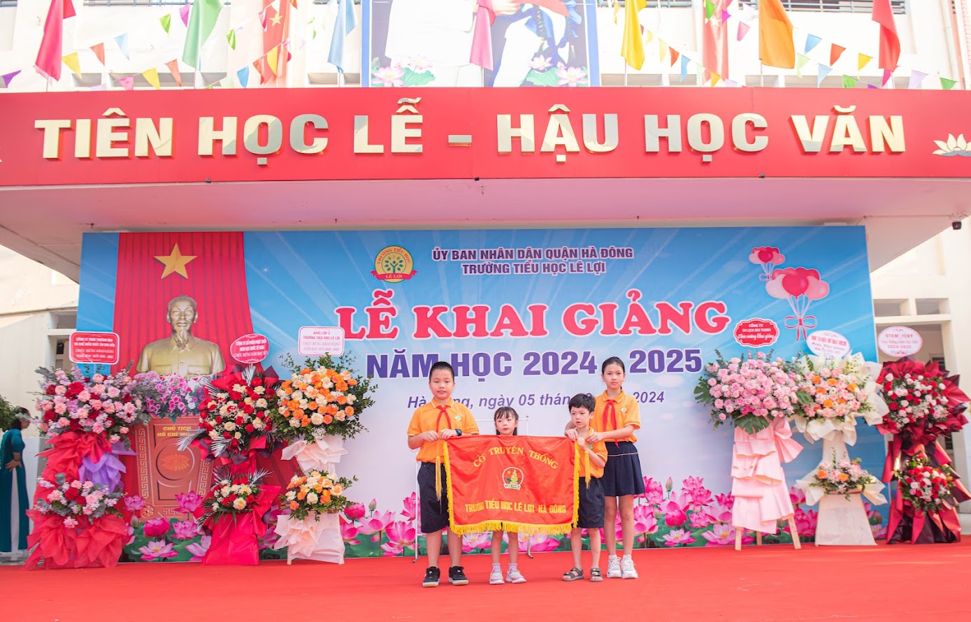 Hoà chung trong không khí tưng bừng phấn khởi của đất nước ta, dân tộc ta với những giây phút hào hùng của mùa thu lịch sử. Kỉ niệm 79 năm cách mạng tháng Tám thành công và Quốc khánh 2-9. Hoà chung không khí tưng bừng của ngày hội toàn dân đưa trẻ tới trường. Hàng triệu giáo viên, học sinh, sinh viên trên cả nước lại cùng nhau bước vào cuộc hành trình khám phá tri thức mới. Thực hiện sự chỉ đạo của phòng GDĐT, hôm nay, ngày 5/9/2024 trường Tiểu học Lê Lợi long trọng tổ chức Lễ khai giảng năm học mới - năm học 2024 - 2025. Nhà trường vinh dự được đón tiếp nhiều vị khách quý đến chung vui, chúc mừng thầy và trò: Bà Nguyễn Thu Hoài - Phó bí thư thường trực Đảng ủy Phường Hà Cầu; Ông Bùi Việt Đông hội trưởng cùng toàn thể ban đại diện Hội cha mẹ học sinh; 40 ông bà CMHS các lớp và toàn thể cán bộ, giáo viên, nhân viên, học sinh nhà trường hân hoan tham dự lễ khai giảng. Trong không khí trang nghiêm và phấn khởi của buổi lễ, cô giáo Đỗ Thị Minh Yến, Bí thư Chi bộ, Hiệu trưởng nhà trường đã chính thức tuyên bố khai giảng năm học mới - năm học 2024 - 2025. Tiếng trống trường vang lên giòn giã, đánh dấu một chặng đường mới đầy hứa hẹn cho thầy và trò trường Tiểu học Lê Lợi. Với chủ đề năm học mới “Đổi mới sáng tạo, nâng cao chất lượng, đoàn kết kỷ cương", cùng với phương châm “Trách nhiệm - Năng động - Sáng tạo” và khẩu hiệu hành động “Thầy mẫu mực - Trò chăm ngoan”, thầy và trò trường Tiểu học Lê Lợi đã sẵn sàng cho một năm học mới, với khí thế mới đầy hứng khởi và hiệu quả. Trang sách đã mở ra, một hành trình mới đã bắt đầu, các thầy cô giáo cùng với những hành trang tri thức sẽ dẫn lối giúp các em khám phá kho tàng kiến thức vô tận. Chúc các em luôn cố gắng hết mình để biến những ước mơ thành hiện thực!