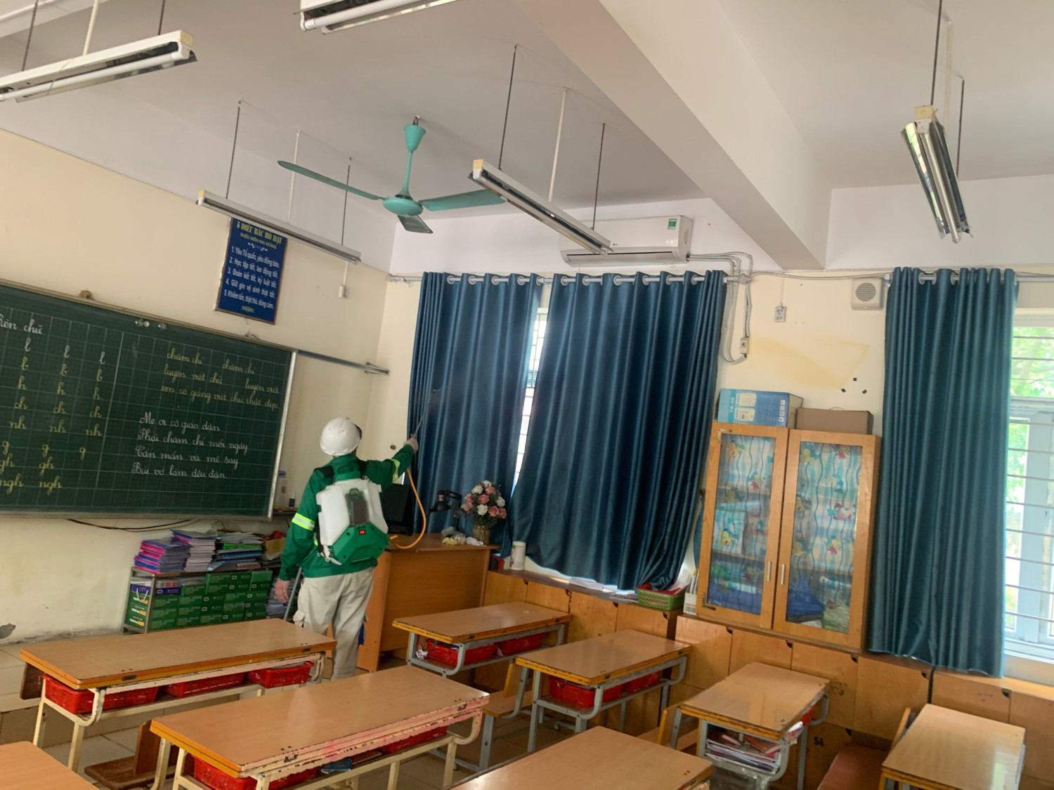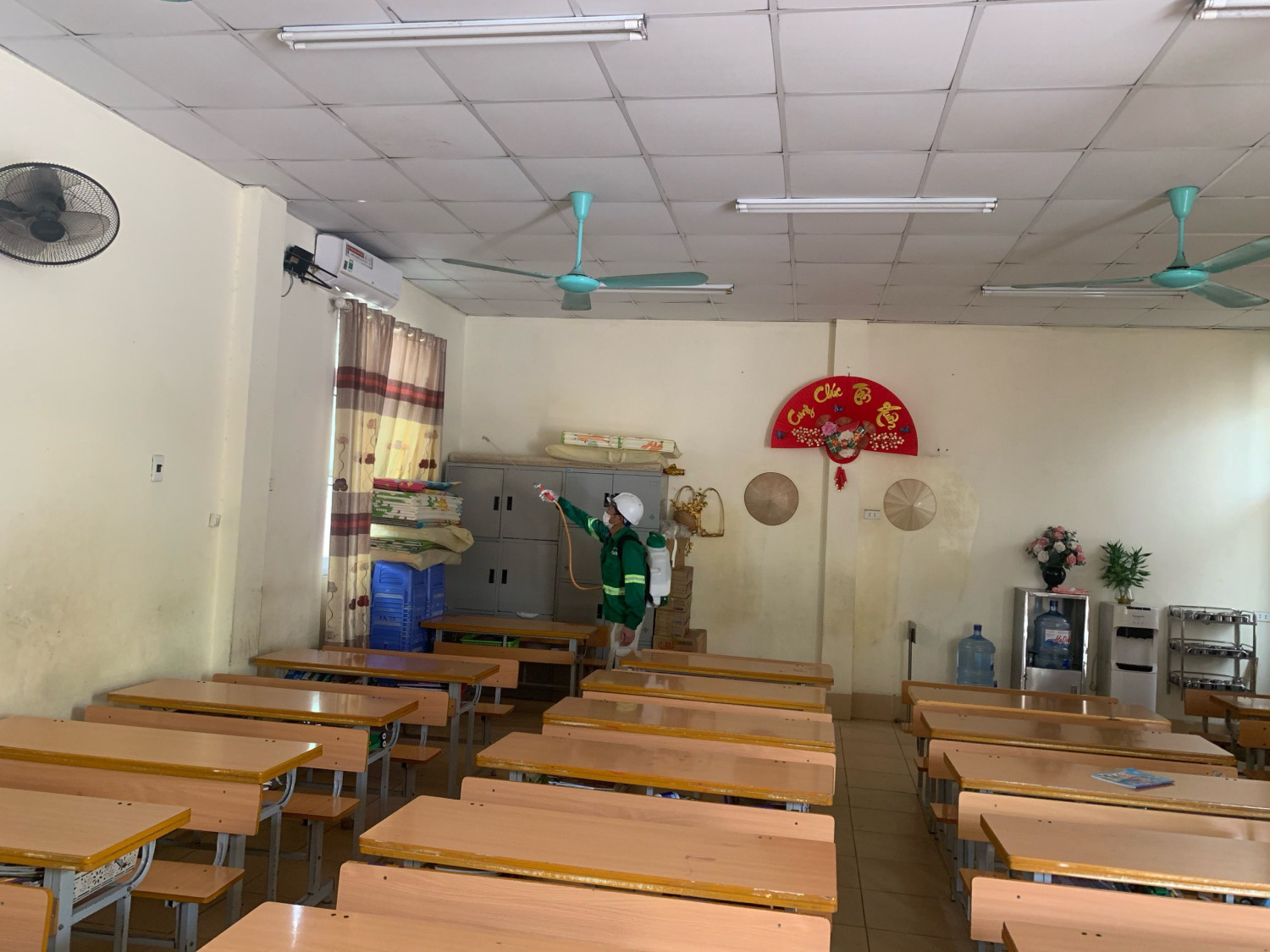 Hiện nay thời tiết đang giao mùa, là thời điểm thích hợp cho các loại côn trùng ( đặc biệt là muỗi) phát sinh, dễ gây ra các bệnh truyền nhiễm như sốt xuất huyết, sốt rét... Để thực hiện tốt công tác phòng, chống một số dịch bệnh phổ biến hiện nay, đồng thời góp phần bảo vệ sức khoẻ cho học sinh cũng như tạo môi trường học tập an toàn, đảm bảo vệ sinh trong nhà trường. Sáng thứ Bảy, ngày 20/04/2024, Trường Tiểu học Lê Lợi kết hợp với Công ty Diệt côn trùng Foodtech phun thuốc diệt muỗi trên phạm vi toàn trường.