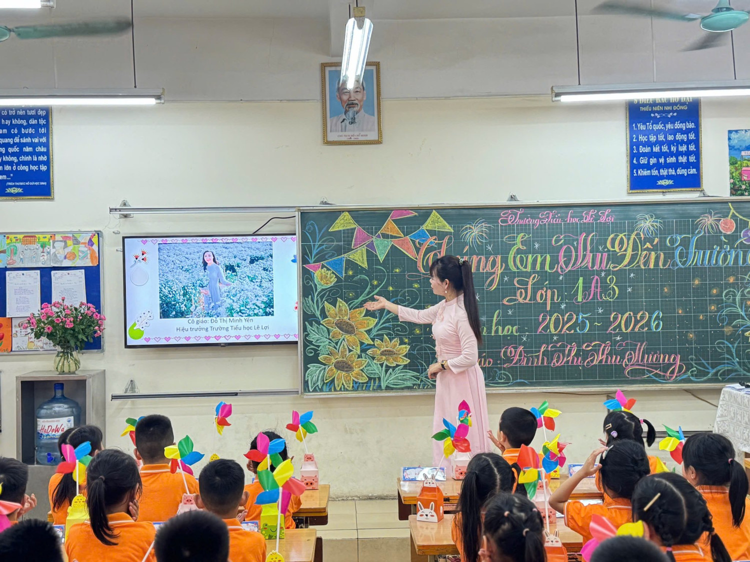 Buổi chiều cùng ngày, nhà trường vui mừng chào đón các em học sinh lớp 1 lần đầu tiên đến với mái trường Tiểu học Lê Lợi. Những ngày đầu đến lớp, các em còn bỡ ngỡ, rụt rè nhưng cũng đầy háo hức trước những điều mới mẻ: trường học mới, bạn bè mới, thầy cô mới. Những ánh mắt tò mò, những bước chân chập chững khám phá từng góc nhỏ của trường lớp đã tạo nên một bức tranh sinh động và đầy cảm xúc.