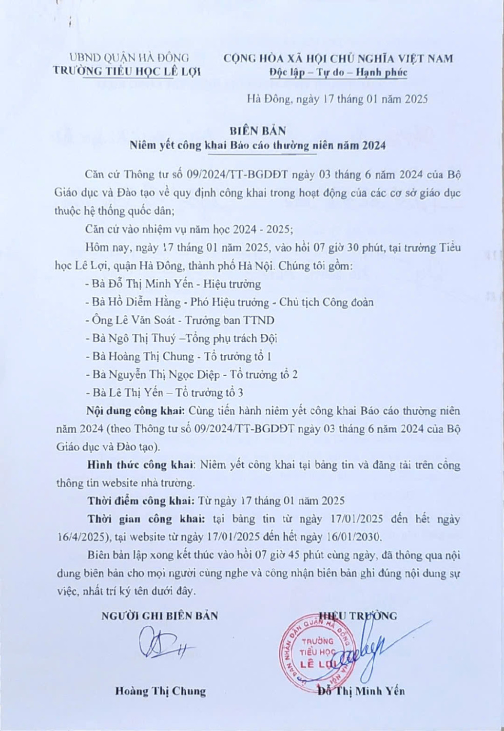 Biên bản Niêm yết công khai Báo cáo thường niên năm 2024