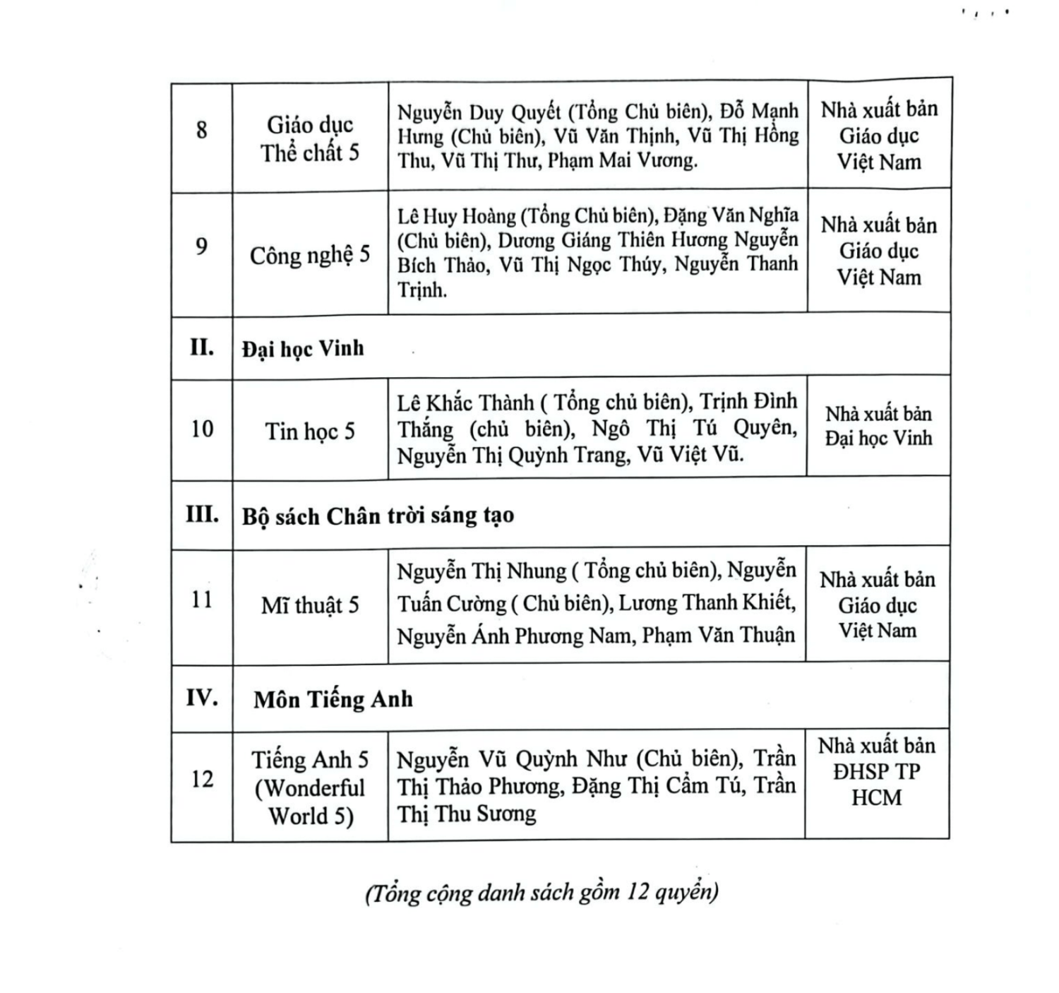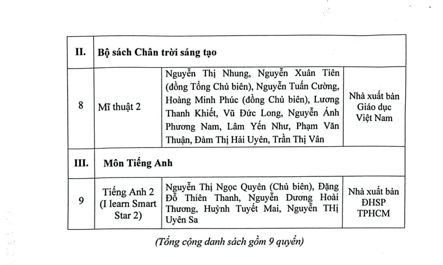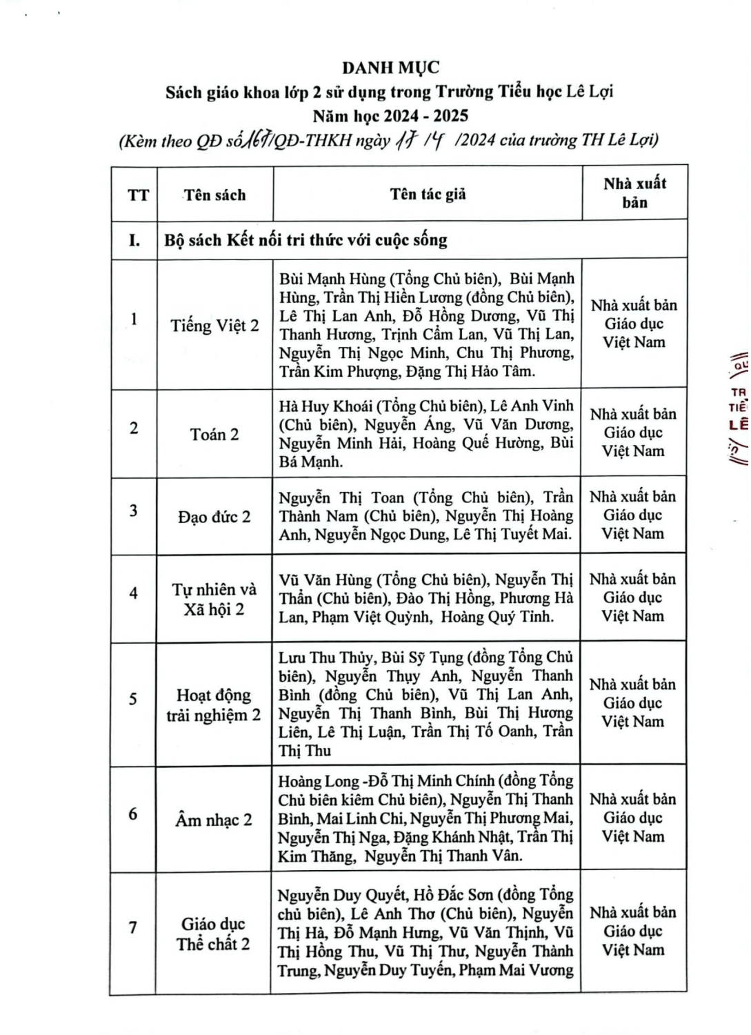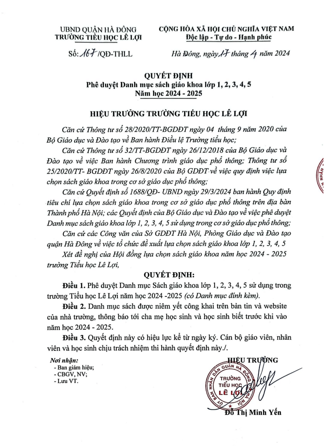 Quyết định Phê duyệt Danh mục SGK lớp 1, 2, 3, 4, 5 năm học 2024-2025