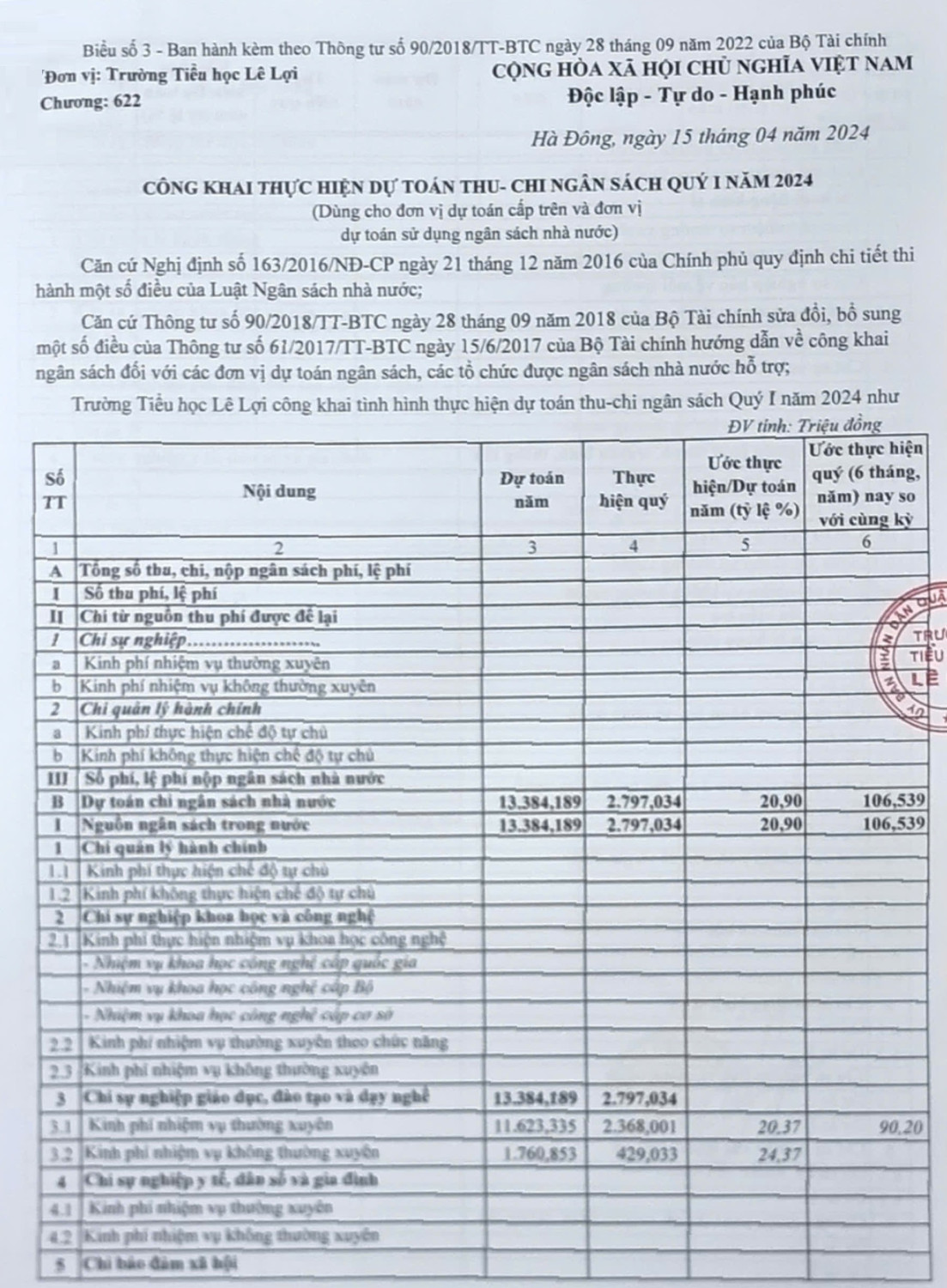 Quyết định Về việc công bố công khai thực hiện dự toán thu - chi ngân sách quý I năm 2024