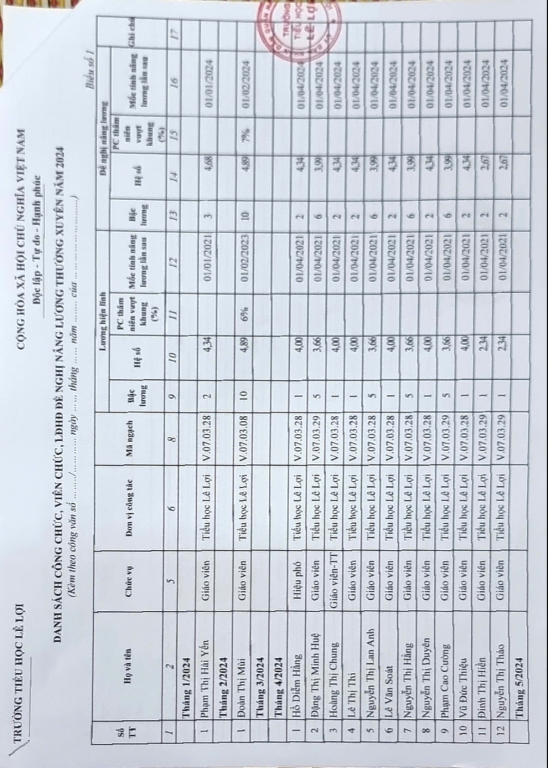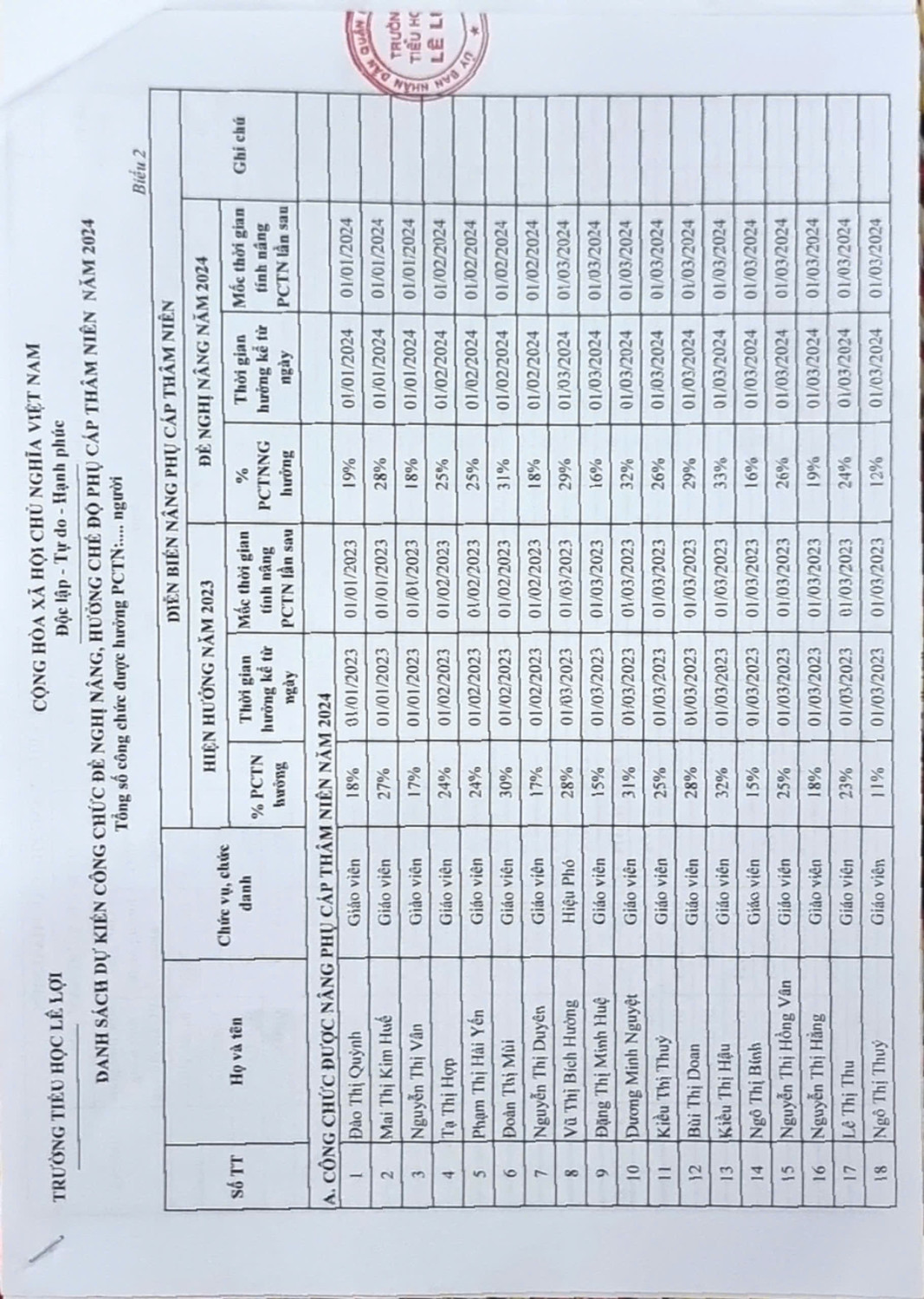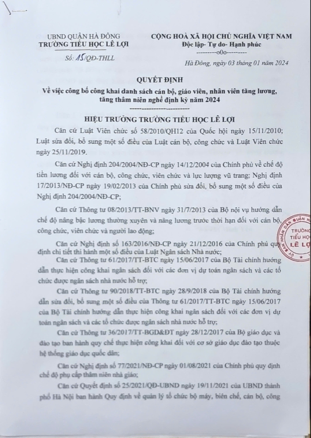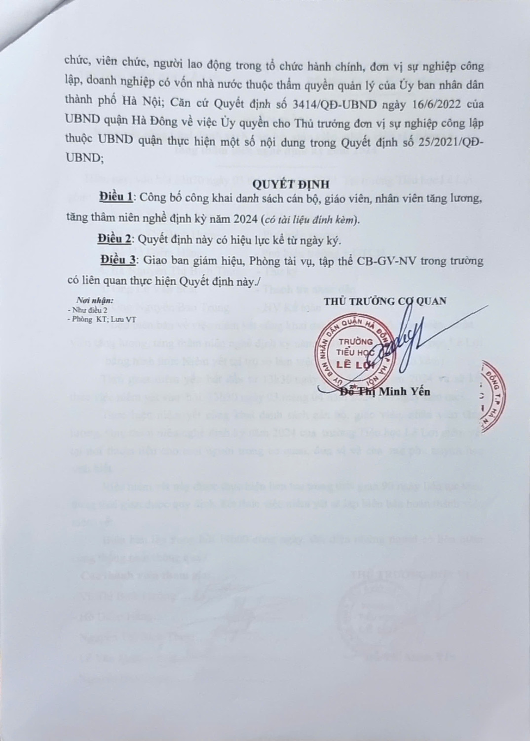 Quyết định Vv công bố công khai danh sách cán bộ, giáo viên, nhân viên tăng lương, tăng thâm niên nghề định kỳ năm 2024