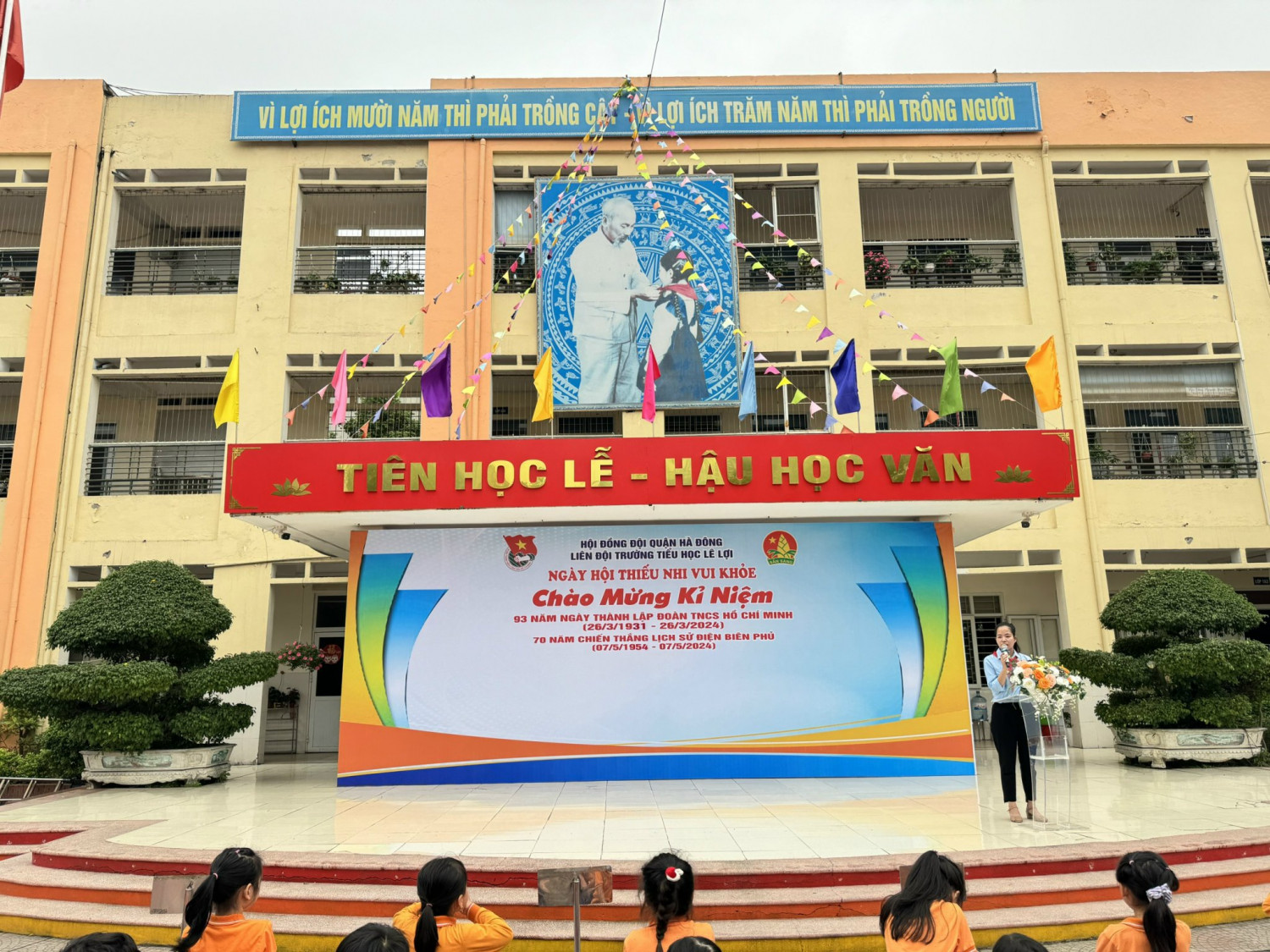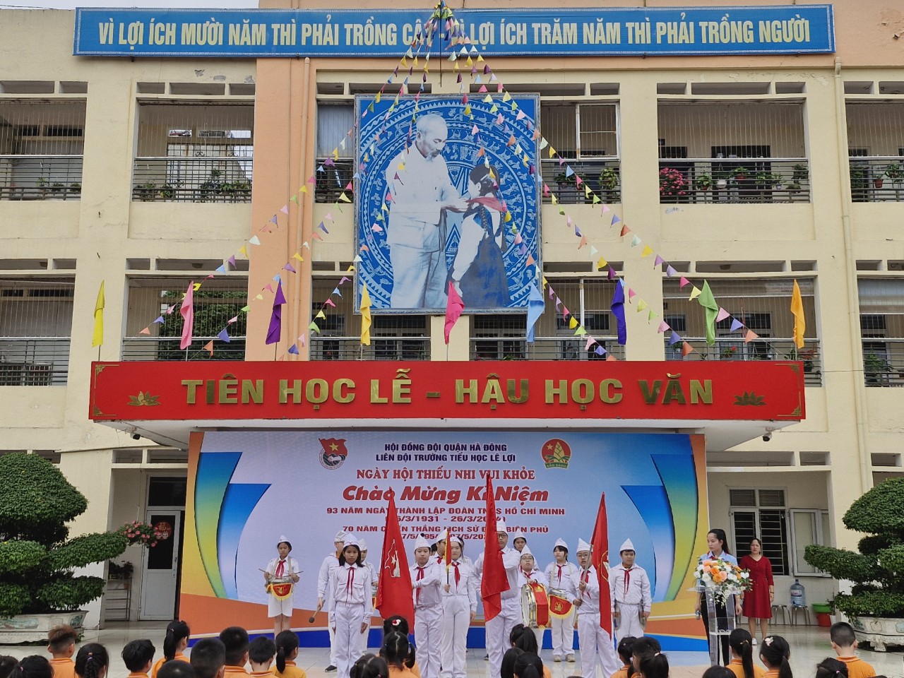 Bác Hồ kính yêu của chúng ta từng nói: “Một năm khởi đầu từ mùa xuân, một đời khởi đầu từ tuổi trẻ". Hôm nay đây, tuổi trẻ chúng ta đang hòa mình trong không khí thi đua sôi nổi chào mừng 93 năm ngày thành lập Đoàn TNCS Hồ Chí Minh (26/3/1931 – 26/3/2024), tuổi trẻ quận Hà Đông nói chung cùng với tuổi trẻ cả nước đang sống trong những ngày tháng Ba lịch sử, tháng Ba của tuổi trẻ, của sức sống và của những khát vọng tràn trề. Thực hiện kế hoạch công tác Đội và phong trào thiếu nhi năm học 2023 - 2024 . Thực hiện sự chỉ đạo của Hội Đồng Đội, Phòng giáo dục và đào tạo Quân Hà Đông, hôm nay ngày 18/3/2024, Liên đội trường TH Lê Lợi long trọng tổ chức: Ngày hội thiếu nhi vui khỏe - Chào mừng kỉ niệm 93 năm ngày thành lập Đoàn và 70 năm chiến thắng Điện Biên Phủ.