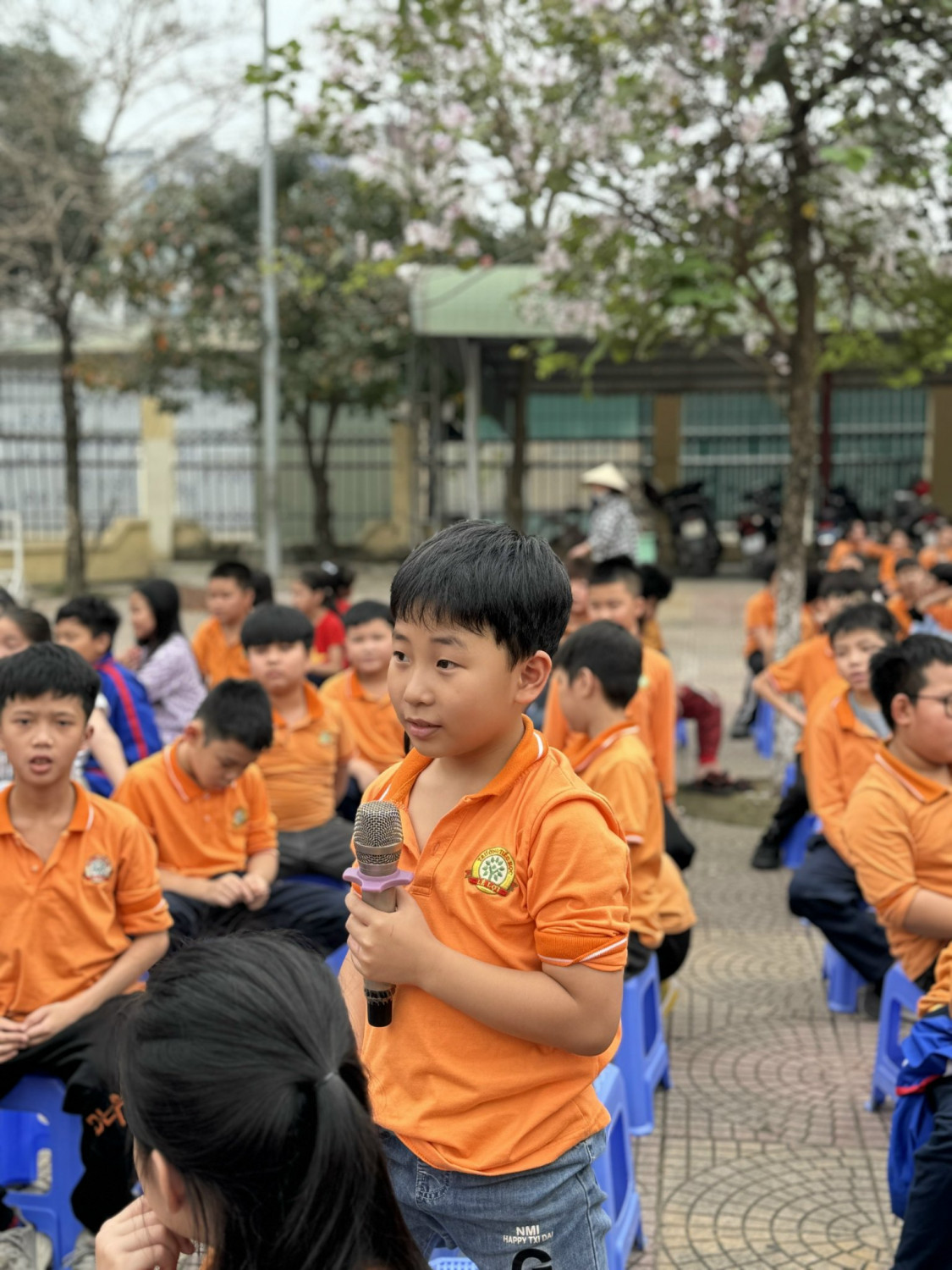 Chương trình được tổ chức trang trọng tại sân trường với sự tham dự của Ban giám hiệu nhà trường, các thầy cô giáo và toàn thể các em học sinh.