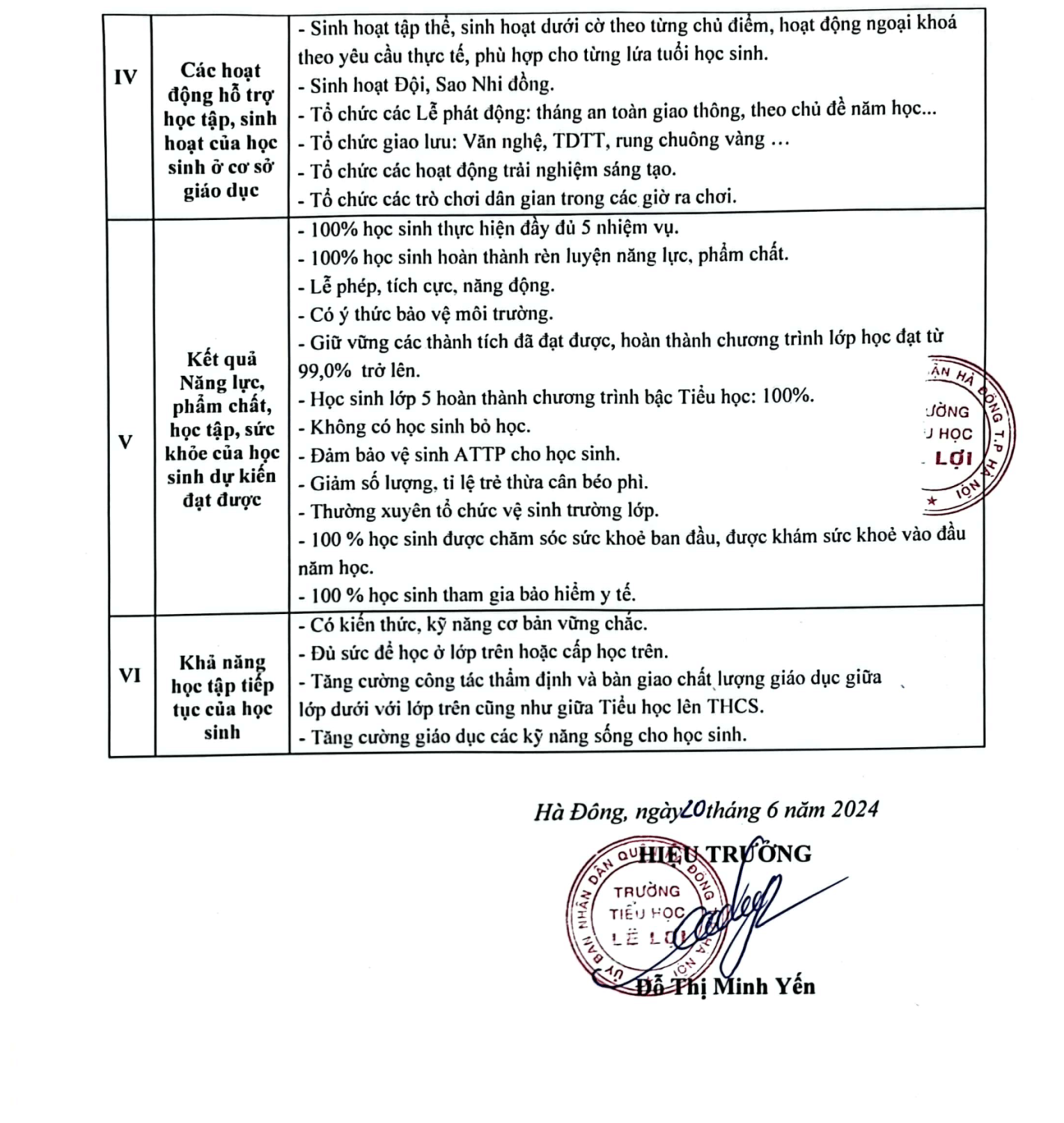 Thông báo cam kết chất lượng giáo dục của cơ sở giáo dục phổ thông năm học 2024 - 2025