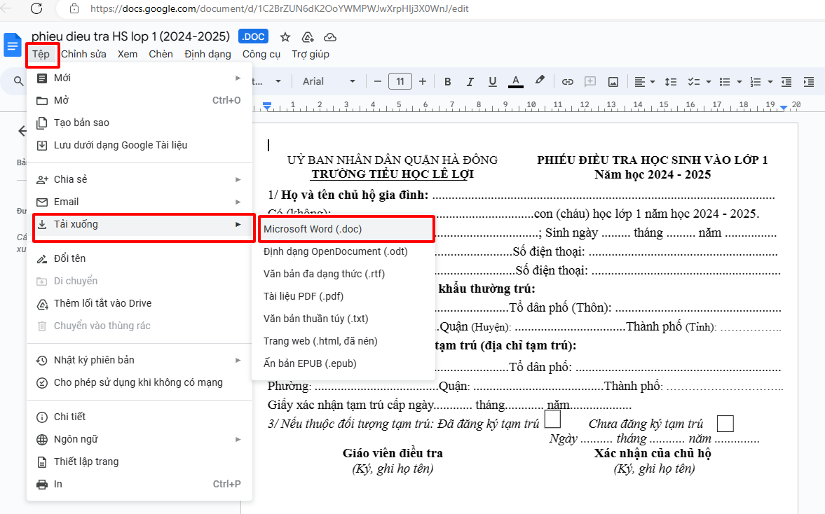 Bước 1: Vào link để tải phiếu điều tra thông tin về.